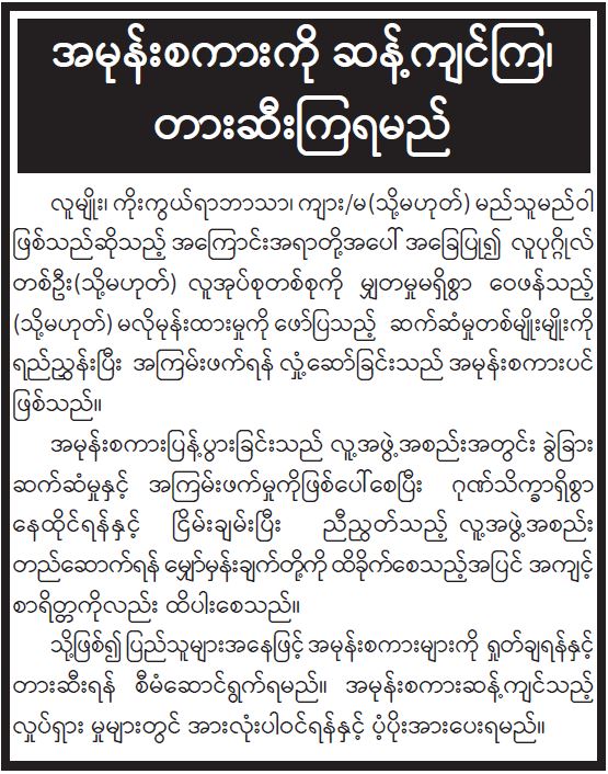 အမုန်းစကားကို ဆန့်ကျင်ကြ၊ တားဆီးကြရမည်