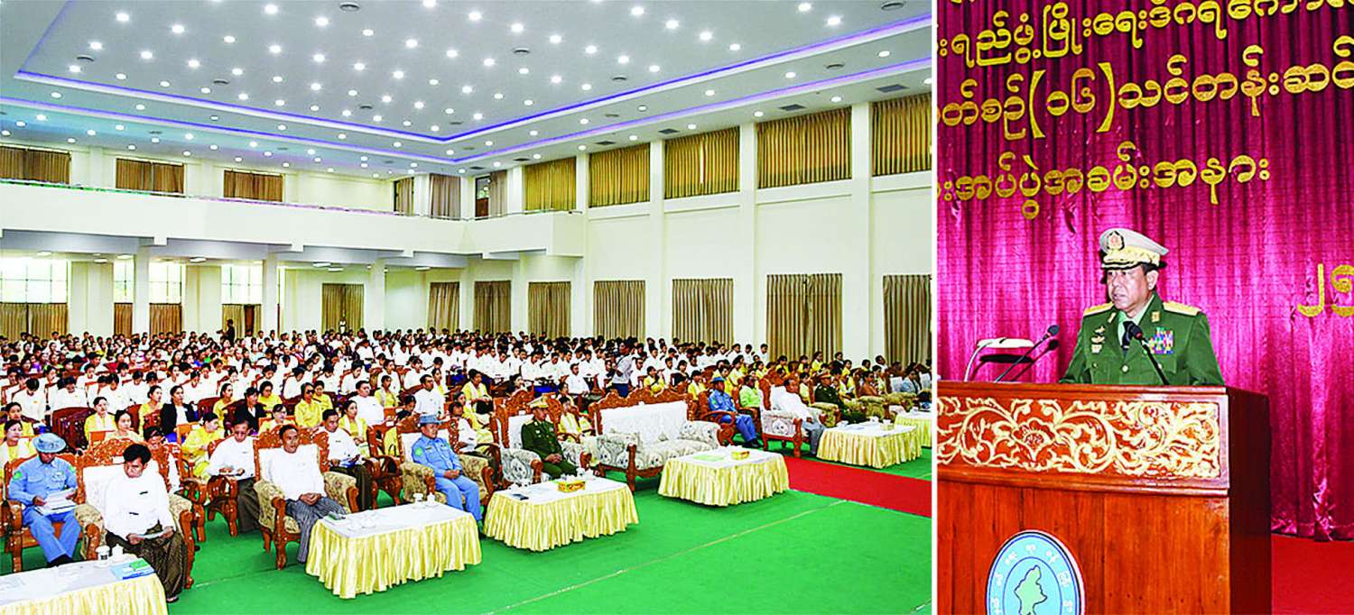 ရှေးဦးစွာ ပြည်ထောင်စုဝန်ကြီးက သင်တန်းဆင်းဂုဏ်ပြုအမှာ စကားပြောကြားရာ၌ ယခုအချိန်ကာလတွင် နိုင်ငံတော်စီမံအုပ်ချုပ်ရေးကောင်စီ၏ ဦးဆောင်မှုဖြင့် နိုင်ငံတော်တည်ငြိမ်အေးချမ်းရေး၊ ဖွံ့ဖြိုးတိုးတက်ရေးနှင့် လူ့စွမ်းအားအရင်းအမြစ် ဖွံ့ဖြိုးတိုးတက်ရေးတို့အတွက် အလေးထားဆောင်ရွက်လျက်ရှိရာ နယ်စပ်ရေးရာဝန်ကြီးဌာနအနေဖြင့် မဟာဗျူဟာ၊ မူဝါဒ၊ ရည်မှန်းချက်များချမှတ်၍ ထိရောက်အောင်မြင်စွာ ကြိုးပမ်းဆောင်ရွက်လျက်ရှိပါကြောင်း၊ နယ်စပ်ဒေသနှင့် တိုင်းရင်းသားလူမျိုးများ၏ ဖွံ့ဖြိုးတိုးတက်မှုအကောင်အထည်ဖော်ရေးဗဟိုကော်မတီ၊ လုပ်ငန်းညှိနှိုင်းအစည်းအဝေး အမှတ်စဉ် (၁/၂၀၂၃)တွင် ဗဟိုကော်မတီဥက္ကဋ္ဌ၊ နိုင်ငံတော်ဝန်ကြီးချုပ်၏ “ဒီဂရီကျောင်းဆင်း ကျောင်းသား၊ ကျောင်းသူများအား မိမိဒေသအုပ်ချုပ်ရေးနှင့် ဒေသဖွံ့ဖြိုးရေးအတွက် MSME လုပ်ငန်းများတွင် ဦးဆောင်ပါဝင် ဆောင်ရွက်စေရန်” ဟူသော လမ်းညွှန်မှာကြားချက်အရ သင်တန်းဆင်းမောင်တို့ မယ်တို့ကို အဆိုပါလမ်းညွှန်ချက်နှင့်အညီ သက်ဆိုင်ရာဝန်ကြီးဌာနလေးခုဖြစ်သည့် ပြည်ထဲရေးဝန်ကြီးဌာန၊ နယ်စပ်ရေးရာဝန်ကြီးဌာန၊ စိုက်ပျိုးရေး၊ မွေးမြူရေးနှင့် ဆည်မြောင်းဝန်ကြီးဌာန၊ သမဝါယမနှင့် ကျေးလက်ဖွံ့ဖြိုးရေး ဝန်ကြီးဌာနတို့တွင် တာဝန်ပေးခန့်အပ်သွားမည်ဖြစ်ပါကြောင်း၊ နယ်စပ်ဒေသဖွံ့ဖြိုးရေးလုပ်ငန်းများကို အရှိန်အဟုန်မြှင့်တင်ဆောင်ရွက်လာနိုင်သည်နှင့်အမျှ တိုင်းရင်းသားလူမျိုးများအကြား အပြန်အလှန်နားလည်မှု၊ ယုံကြည်မှုများ ပိုမိုရရှိလာပြီး တည်ငြိမ်အေးချမ်းမှု၊ တရားဥပဒေစိုးမိုးမှုများ တိုးတက်လာမည်ဖြစ်ပါကြောင်း၊ တစ်နိုင်ငံလုံးအကြားအလပ်မရှိ ဖွံ့ဖြိုးတိုးတက်ရေးသည် နိုင်ငံတော်အတွင်း မှီတင်းနေထိုင်ကြသည့် နိုင်ငံသားအားလုံးနှင့်သက်ဆိုင်ပြီး အရေးကြီးသည့် အခန်းကဏ္ဍတစ်ခုဖြစ်ပါကြောင်း။