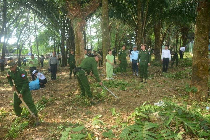 ယခုအချိန်အခါတွင် နိုင်ငံတော်စီမံအုပ်ချုပ်ရေးကောင်စီ၏ ဦးဆောင်မှုနှင့်အတူ နိုင်ငံတစ်ဝန်းလုံး၌ တပ်မတော်သားများ၊ ဌာနဆိုင်အဖွဲ့အစည်းများ၊ ဒေသခံပြည်သူအားလုံးတို့က နိုင်ငံတော်ဖွံ့ဖြိုးတိုးတက်ရေးလုပ်ငန်းများကို ညီညီညွတ်ညွတ်ဖြင့် ဆောင်ရွက်လျက်ရှိကြပြီး အပတ်စဉ်စနေနေ့တိုင်းတွင်လည်း မိမိတို့၏ မြို့၊ ရွာများရှိ ဆေးရုံ၊ ဆေးခန်းများ၌ ခြင်၊ ယင်၊ ပေါက်ဖွားမှုမရှိစေရေးနှင့် ဆေးရုံတက်ရောက်ကုသနေသော လူနာများအား လေကောင်းလေသန့်ရရှိစေရန် ချုံနွယ်၊ ပေါင်းမြက်များ ခုတ်ထွင်ရှင်းလင်းခြင်းများကို အားတက်သရော ဆောင်ရွက်လျက်ရှိသည်။