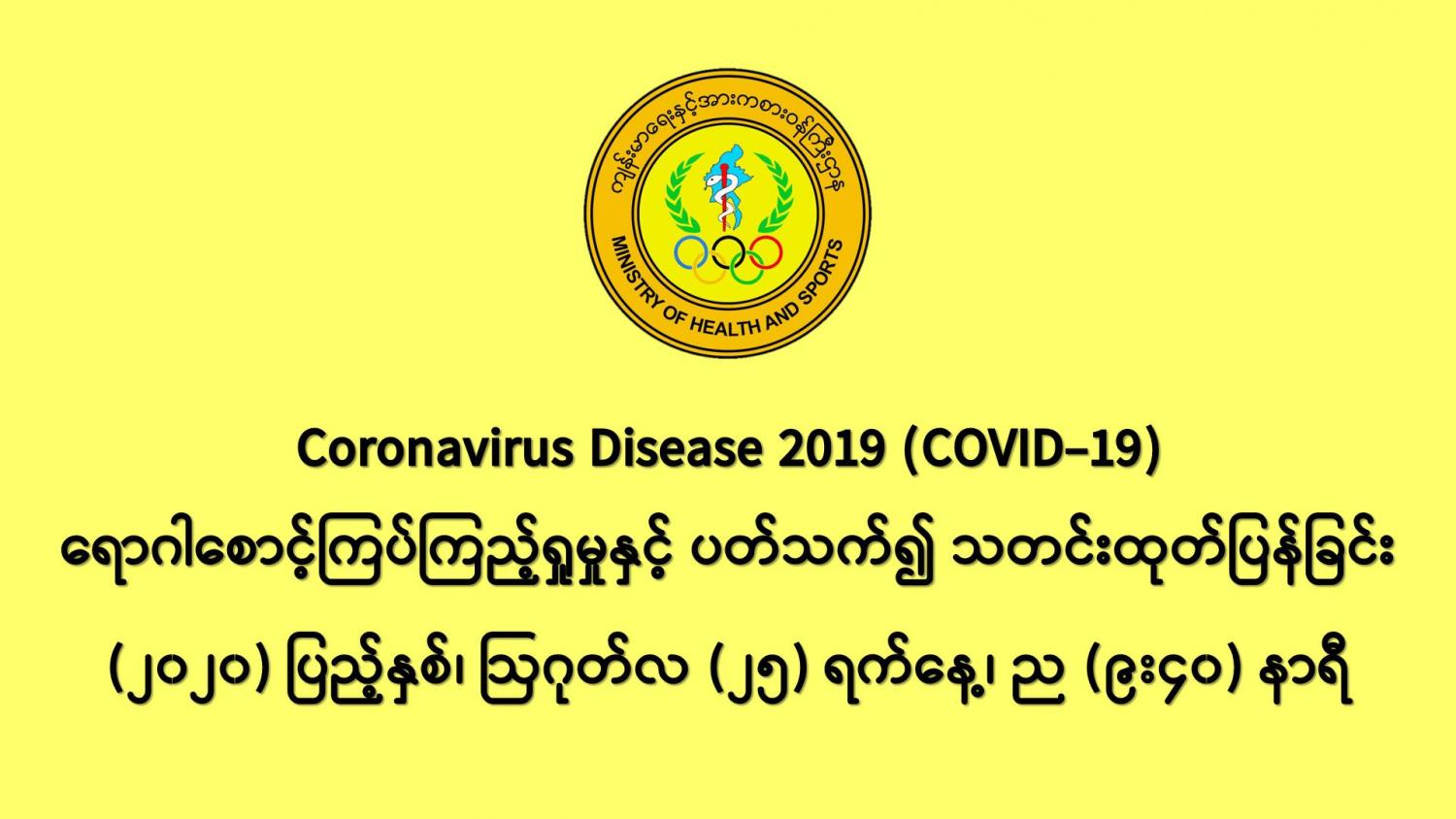 • COVID-19 ရောဂါ ဓာတ်ခွဲအတည်ပြုလူနာသစ် (၃၀) ဦး တွေ့ရှိရကြောင်းကို ည (၈:၃၀) နာရီတွင် ကြေညာခဲ့ပြီးဖြစ်ပါသည်။