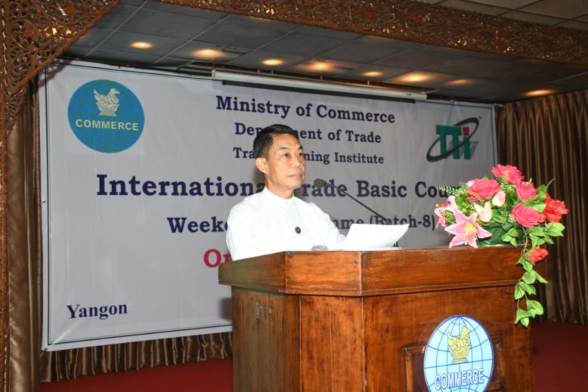 ဦးစွာ ပြည်ထောင်စုဝန်ကြီး ဦးထွန်းအုံက ပုဂ္ဂလိကကဏ္ဍအသီးသီးရှိ စီးပွားရေးလုပ်ငန်းရှင်များအနေဖြင့် ကုန်သွယ်မှုဆိုင်ရာလုပ်ထုံး လုပ်နည်းများကိုသိရှိနားလည်ပြီး နိုင်ငံတကာနှင့် ဆက်သွယ်ဆောင်ရွက်ရာတွင် သိသင့်သိထိုက်သော ကုန်သွယ်မှုဆိုင်ရာ အသိပညာဗဟုသုတ များရရှိစေရန်၊ မြန်မာနိုင်ငံ၏ စီးပွားရေးဖွံ့ဖြိုးတိုးတက်မှုအတွက် အဓိကအရေးပါသည့် ပို့ကုန်၊ သွင်းကုန်လုပ်ငန်းရှင်သစ်များနှင့် ကုန်သည်စီးပွားရေးလုပ်ငန်းရှင်သစ်များ မွေးထုတ်ပေးရန်၊ ကုန်သွယ်မှုနှင့်သက်ဆိုင်သည့် လူ့စွမ်းအားအရင်းအမြစ်များ ဖွံ့ဖြိုးတိုးတက်စေရန်တို့အတွက် ရည် ရွယ်၍ သင်တန်းကိုဖွင့်လှစ်ခြင်းဖြစ်ပါကြောင်း။