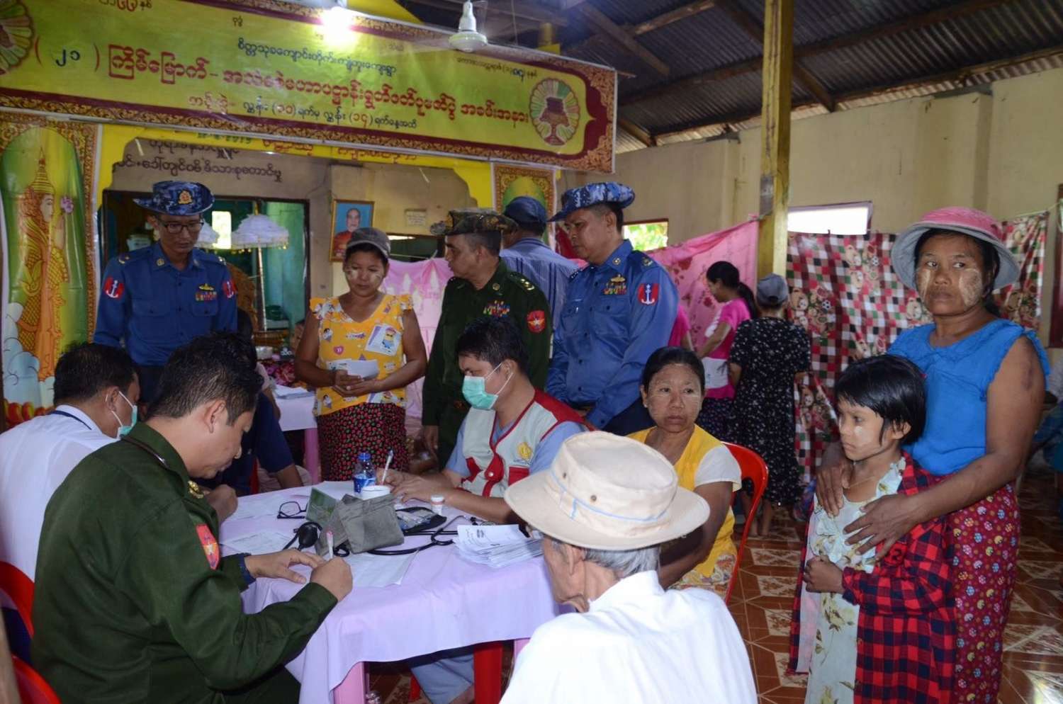 ထိုသို့ ဆောင်ရွက်ပေးရာတွင် ဆေးအဖွဲ့က ဆေးကုသမှုဆိုင်ရာရောဂါ ၃၇၈ ဦး၊ ခွဲစိတ်ရောဂါ ၁၀၅ ဦး၊ သားဖွား/ မီးယပ်ရောဂါ ၆၃ ဦး၊ ကလေးရောဂါ ၆၂ ဦး၊ အရိုးရောဂါ ၂၀၂ ဦး၊ နား/ နှာခေါင်း/ လည်ချောင်းရောဂါ ၈၆ ဦး၊ မျက်စိရောဂါ ၂၅၁ ဦးနှင့် သွားနှင့်ခံတွင်းရောဂါ ၉၀ ဦးတို့ကို လိုအပ်သည့် ဆေးဝါးကုသမှုများ ဆောင်ရွက်ပေးသည်။ ထို့အပြင် အထွေထွေခွဲစိတ်လူနာ ၁၇ ဦး၊ မျက်စိခွဲစိတ်လူနာ ၁၇ ဦး၊ ဓာတ်မှန်ရိုက်လူနာ ၁၈ ဦး၊ အာထရာဆောင်းဖြင့် စမ်းသပ်စစ်ဆေးလူနာ ၆၃ ဦး၊ ECG စက်ဖြင့် နှလုံးစမ်းသပ်လူနာ ၁၈ ဦးနှင့် ဓာတ်ခွဲစမ်းသပ်လူနာ ၅၇ ဦးတို့ကို ရောဂါ ရှာဖွေစမ်းသပ် ခွဲစိတ်ကုသပေးခြင်းများ ဆောင်ရွက်ပေးပြီး ဆေးရုံတက်ရောက်ကုသရန်လိုအပ်သူ ၅ ဦးကို နီးစပ်ရာ တပ်မတော်ဆေးရုံများသို့ တက်ရောက်ကုသနိုင်ရေး စီစဉ်ဆောင်ရွက်ပေးသည်။