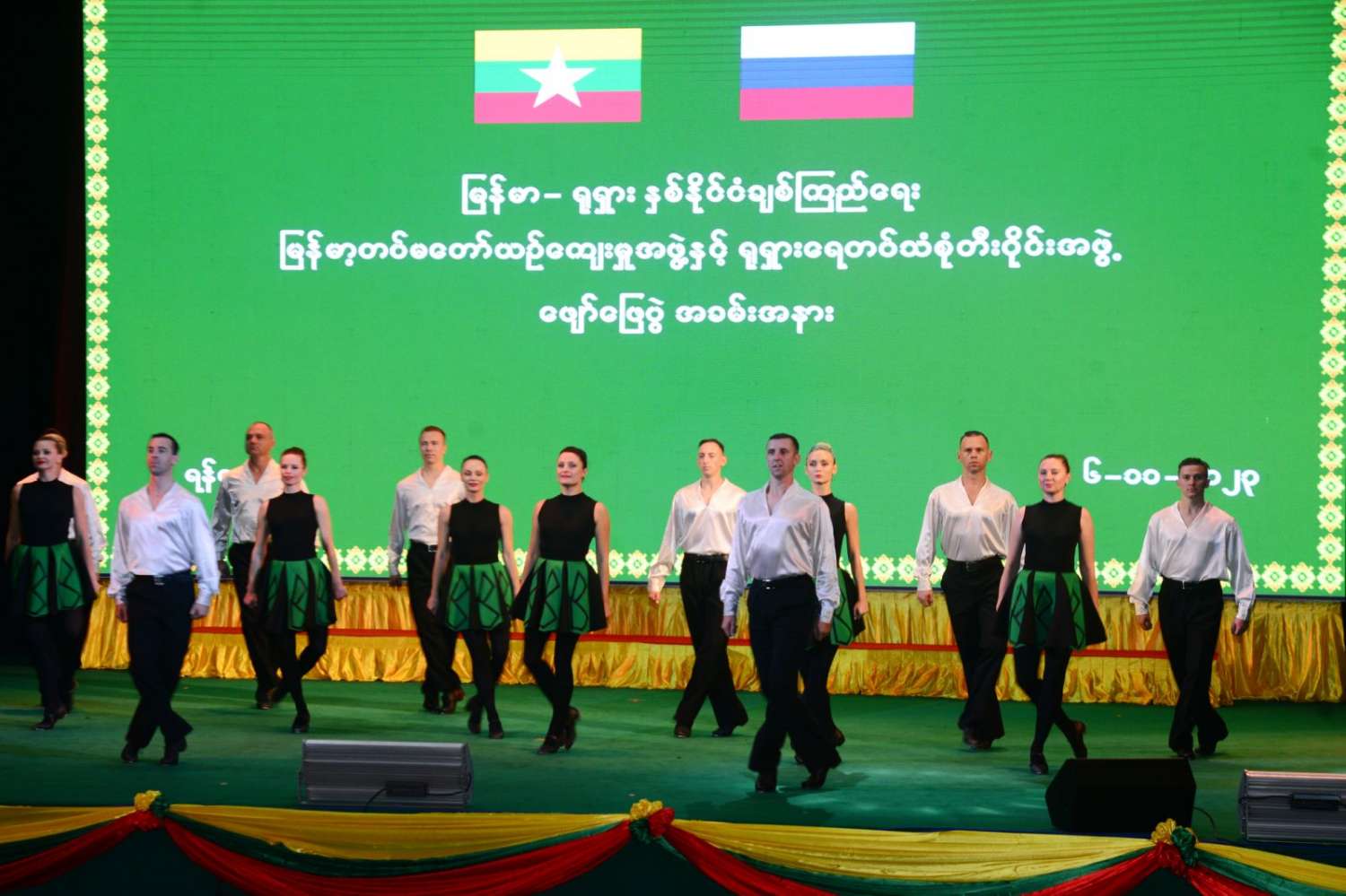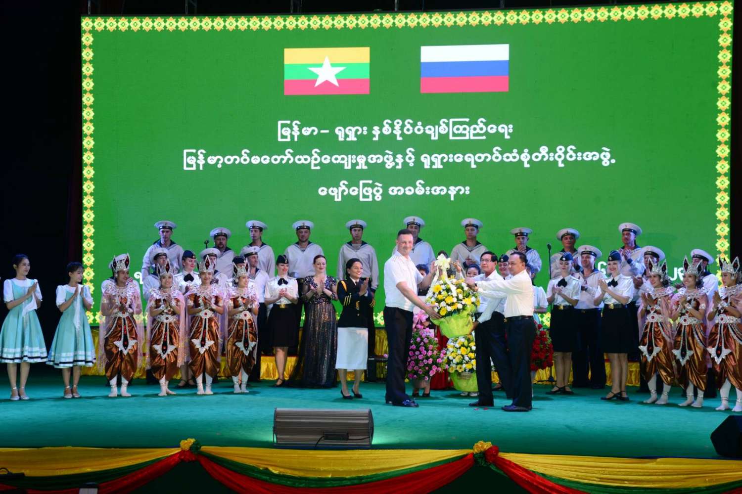 ဖျော်ဖြေပွဲတွင် မြန်မာ−ရုရှားနှစ်နိုင်ငံ ချစ်ကြည်ရေး မြန်မာ့တပ်မတော် ယဉ်ကျေးမှုအဖွဲ့နှင့် ရုရှားရေတပ်သံစုံတီးဝိုင်အဖွဲ့တို့မှ အနုပညာရှင်များက ဖျော်ဖြေကြရာ ရုရှားရေတပ်သံစုံ တီးဝိုင်းအဖွဲ့က ရုရှားသီချင်းများ၊ အကအလှများအပါအဝင် မြန်မာတေးသီချင်းကို လည်းကောင်း၊ မြန်မာ့တပ်မတော် ယဉ်ကျေးမှုအဖွဲ့ မြဝတီတေးဂီတ အဖွဲ့က ဆန်းသစ်လှပ ပုဂံယိမ်းအကအပါအဝင် ရုရှားတေးသီချင်းဖြစ်သည့် Katyuha သီချင်းနှင့် Kalinka တေးသီချင်းတို့အား မြန်မာ့ရိုးရာတူရိယာပစ္စည်းများဖြစ်သည့် မြန်မာ့ဆိုင်းဝိုင်းကြီးနှင့် မြိုင်ဆိုင်စွာတီးခတ်ပြီး ရုရှားတေးသီချင်းဖြစ်သည့် Ar Thi Na Si Me Yar ကို သီဆို၍ လည်းကောင်း အသီးသီးဖျော်ဖြေတင်ဆက်ကြသည်။