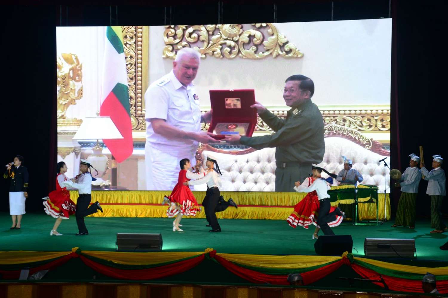 ဖျော်ဖြေမှုများအပြီးတွင် တိုင်းဒေသကြီးဝန်ကြီးချုပ်နှင့် တိုင်းမှူးတို့က ရုရှားရေတပ်သံစုံတီးဝိုင်း အဖွဲ့အားလည်းကောင်း၊ မြန်မာနိုင်ငံဆိုင်ရာ ရုရှားသံအမတ်ကြီးက ပြည်သူ့ဆက်ဆံရေးနှင့် စိတ်ဓါတ်စစ်ဆင်ရေးညွှန်ကြားရေးမှူးရုံး ကွပ်ကဲမှုအောက် မြန်မာ့တပ်မတော်ယဉ်ကျေးမှုအဖွဲ့ မြဝတီတေးဂီတအဖွဲ့အား လည်းကောင်း ဂုဏ်ပြုပန်းခြင်းများနှင့် လက်ဆောင်ပစ္စည်းများ အသီးသီးပေးအပ်ချီးမြှင့်ကြပြီး နှစ်နိုင်ငံယဉ်ကျေးမှုအဖွဲ့များနှင့်အတူ အမှတ်တရစုပေါင်း ဓာတ်ပုံရိုက်ခဲ့ကြကြောင်း သတင်းရရှိသည်။