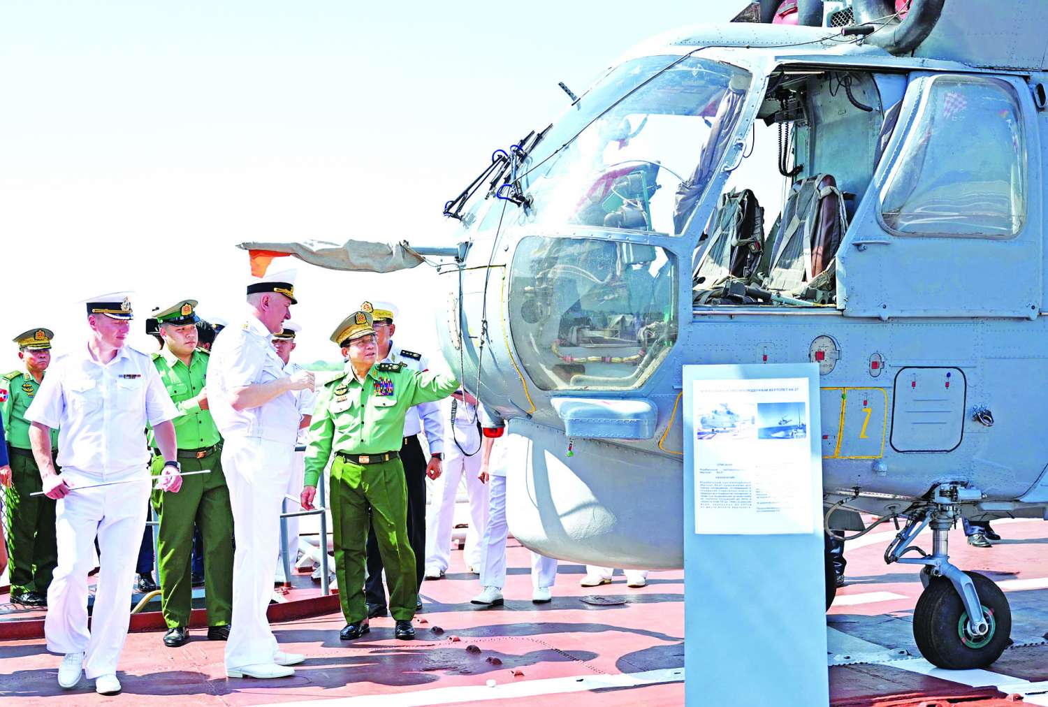 ယင်းနောက် နိုင်ငံတော်စီမံအုပ်ချုပ်ရေးကောင်စီ ဥက္ကဋ္ဌ တပ်မတော်ကာကွယ်ရေးဦးစီးချုပ်နှင့် အဖွဲ့ဝင်များသည် ရုရှားစစ်ရေယာဉ် Admiral Tributs သို့ တက်ရောက်ရာ စစ်ရေယာဉ်မှူး 2nd rank Igor N.TOLBATOV က ကြိုဆိုသည်။