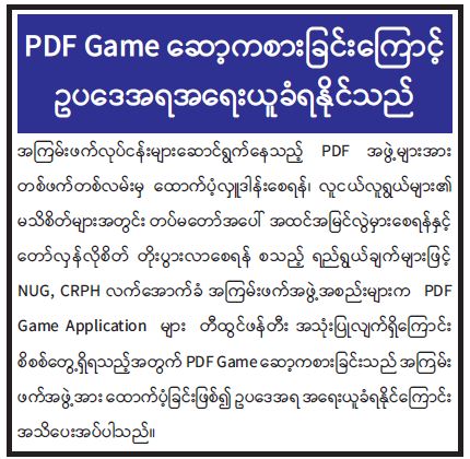 PDF Game ဆော့ကစားခြင်းကြောင့် ဥပဒေအရ အရေးယူခံရနိုင်သည်