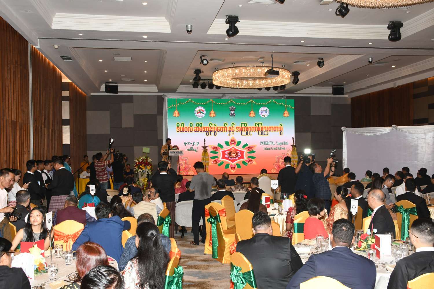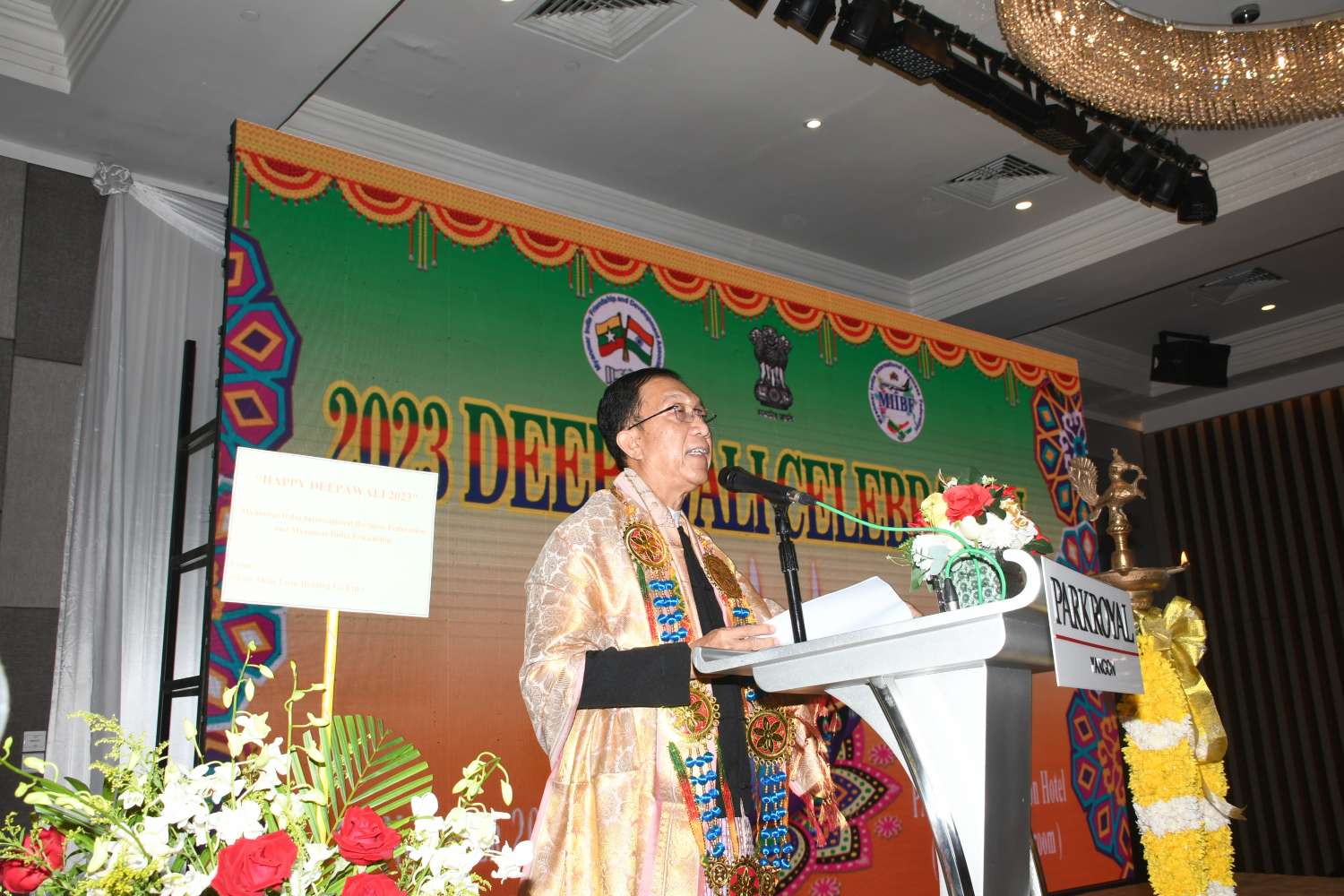 ဟိန္ဒူဘာသာဝင်များအနေဖြင့် ဤကောင်းမြတ်သည့် အခြေခံမူများနှင့်အညီ ဘာသာကြီးလေးခု၏ ချစ်ကြည်ညီညွတ်မှုကို ဝိုင်းဝန်းကူညီပြီး ဆက်လက်အကောင်အထည်ဖော်ကြစေ လိုပါကြောင်း၊ အိန္ဒိယနိုင်ငံနှင့် မြန်မာနိုင်ငံတို့အကြား ပူးပေါင်းဆက်သွယ်မှုများ ယခင်ကထက် တိုးတက်ဆောင်ရွက်လာနေသည့် ယခုလိုအချိန်အခါတွင် မြန်မာ-အိန္ဒိယ အပြည်ပြည်ဆိုင်ရာ စီးပွားရေးလုပ်ငန်းရှင်များအသင်းကြီးအနေဖြင့် နှစ်နိုင်ငံ ပူးပေါင်းဆောင်ရွက်မှု သဘောတူညီ ချက်များနှင့်အညီ စီးပွားရေးခွန်အားများနှင့် အခွင့်အလမ်းများကို ဖော်ထုတ်တိုးပွားနိုင်ကြလိမ့်မည်ဟု ယုံကြည်မိပါကြောင်း၊ မင်္ဂလာအပေါင်းနှင့်ပြည့်စုံသည့် ဟိန္ဒူဘာသာဝင်တို့၏ ဒီပါဝလီပွဲတော်ကာလ ဆီမီးထွန်းညှိပူဇော်ခြင်းကို အခြေခံပြီး လူသားအချင်းချင်း အပြန်အလှန်ချစ်ခင်ရင်းနှီးခြင်း မေတ္တာတရား၊ အပြန်အလှန်သည်းခံခွင့်လွှတ်ခြင်း အဟိံသတရား၊ သနားကြင်နာခြင်း ကရုဏာတရားစသည့် ဓမ္မအလင်းတန်းများ ဖြန့်ကြက်ဝေဖြာနိုင်ပါစေ၊ တစ်ဦးနှင့်တစ်ဦး မေတ္တာအလင်းရောင် လင်းလက်ကူးယှက်ကြပြီး မြန်မာနိုင်ငံတော်ကြီး၏ အကျိုးစီးပွားကို ရှေးရှုကြလျက် နိုင်ငံတော်ငြိမ်းချမ်းသာယာဝပြောပြီး ခေတ်မီဖွံ့ဖြိုးတိုးတက်ရေး ဆိုင်ရာလုပ်ငန်းများမှာ စည်းလုံးညီညာစွာ ပါဝင်ထမ်းဆောင်နိုင်ကြပါစေရန် ဆုမွန်ကောင်း တောင်းအပ်ပါကြောင်း ဂုဏ်ပြု အမှာစကား ပြောကြားသည်။