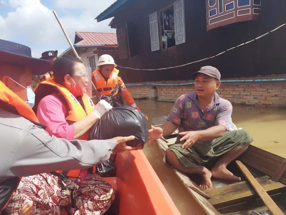ကရင်ပြည်နယ်၊ ဘားအံမြို့တွင် သံလွင်မြစ်ရေမြင့်တက်လာမှုကြောင့် ဘားအံမြို့မြေနိမ့်ပိုင်းရပ်ကွက်အချို့တွင် ရေများဝင်ရောက်လျှက်ရှိရာ ကရင်ပြည်နယ်ဝန်ကြီးချုပ် ဒေါ်နန်းခင်ထွေးမြင့်၊ ကရင်ပြည်နယ်အစိုးရအဖွဲ့ဝင် ပြည်နယ်စီမံကိန်း၊ ဘဏ္ဍာရေးနှင့် စည်ပင်သာယာရေးဝန်ကြီး ဦးသန်းနိုင်၊ ပြည်နယ်လူမှုရေးဝန်ကြီး ဦးဘိုဘိုဝေမောင်နှင့် တာဝန်ရှိသူများသည် ယမန်နေ့မွန်လွဲ(၃)နာရီက ဘားအံမြို့၊ အမှတ်(၅)ရပ်ကွက်ရှိ ယာယီရေဘေး ကယ်ဆယ်ရေးစခန်းသို့ လာရောက်နေထိုင်စရာမလိုဘဲ ဆွေမျိုးမိတ်ဆွေအိမ်များနှင့် ခြေတန်ရှည်အိမ်အမြင့်များတွင် နေထိုင်နိုင်သေးသူမိသားစုဝင်များအား ဆန်နှင့်စားရိက္ခာများသွားရောက်ထောက်ပံ့ပေးခဲ့ကြောင်း သိရသည်။