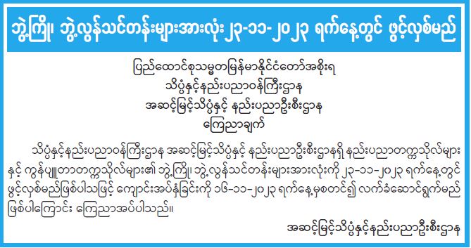 ဘွဲ့ကြို၊ ဘွဲ့လွန်သင်တန်းများအားလုံး၂၃-၁၁-၂၀၂၃ ရက်နေ့တွင် ဖွင့်လှစ်မည်