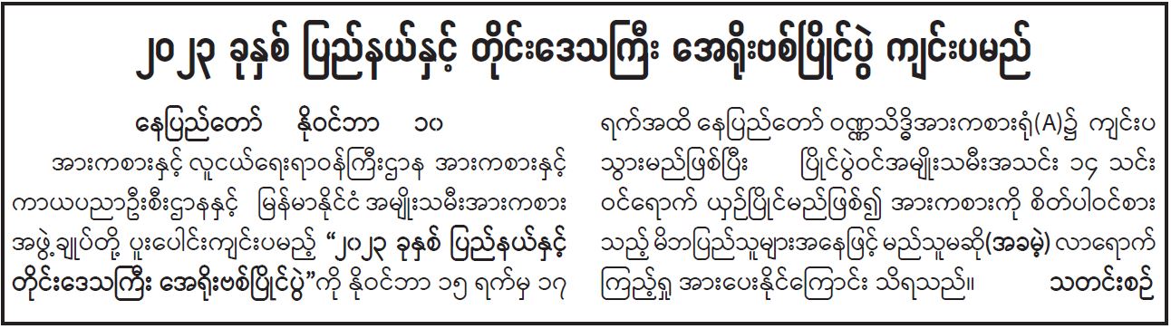 ပြည်နယ်နှင့်တိုင်းဒေသကြီး အေရိုးဗစ်ပြိုင်ပွဲ ကျင်းပမည်