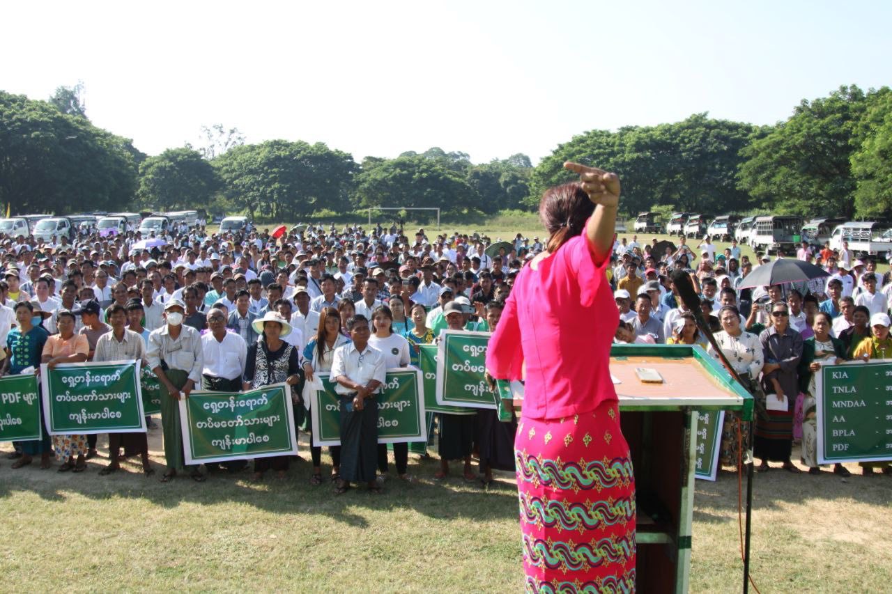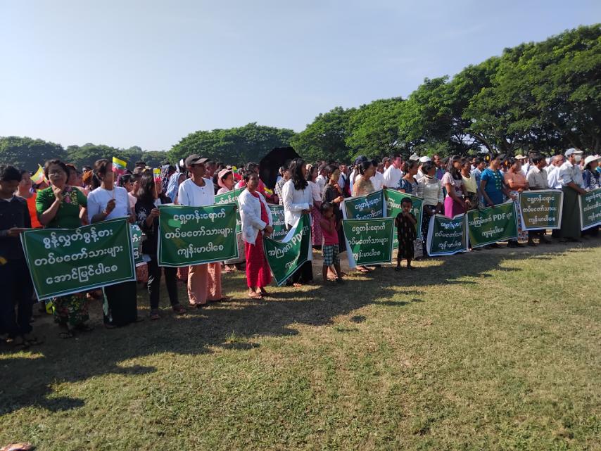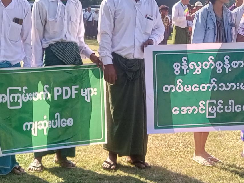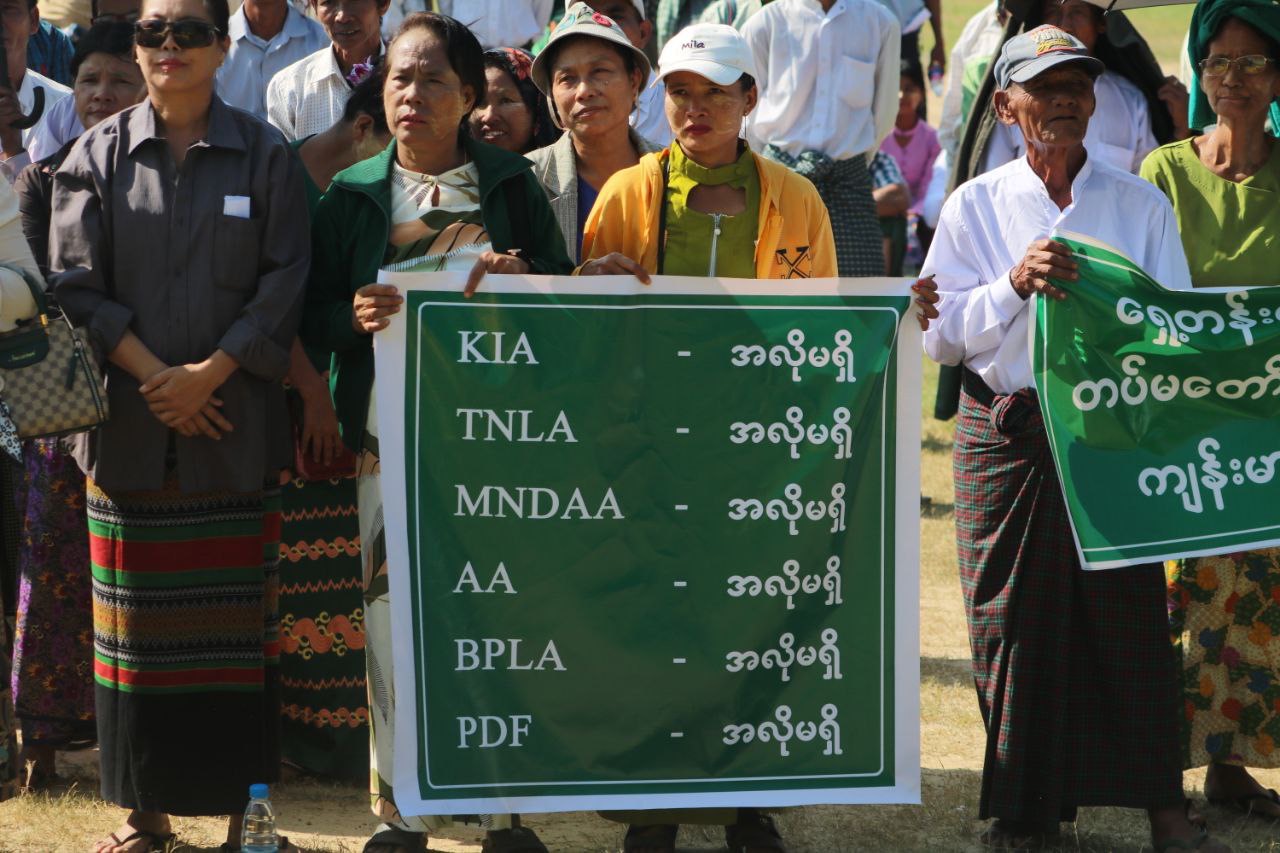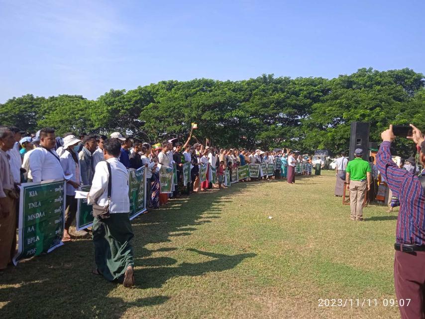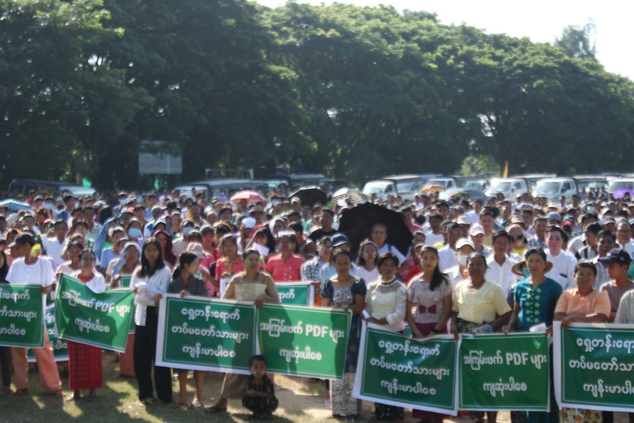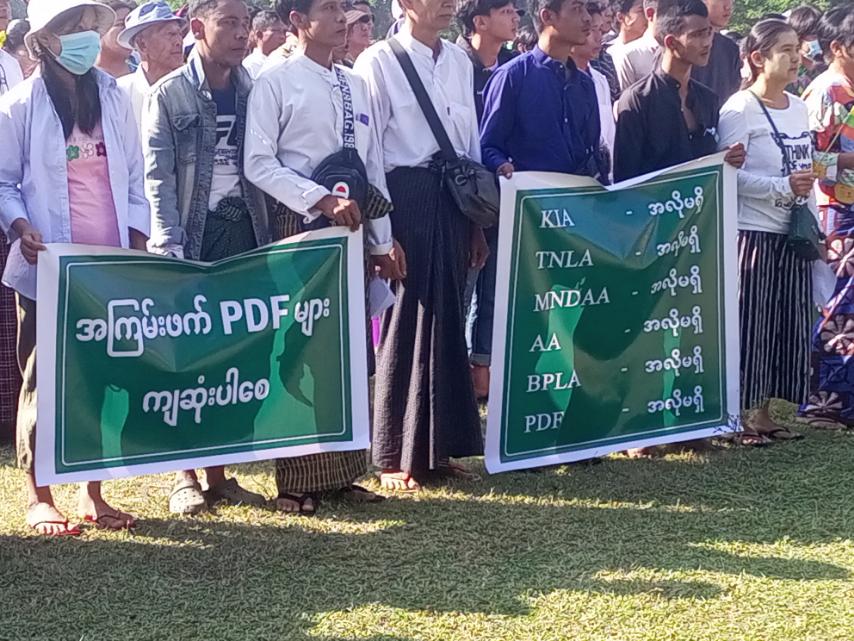 အဆိုပါ ထောက်ခံပွဲသို့ ပြည်ထောင်စုကြံ့ခိုင်ရေးနှင့်ဖွံ့ဖြိုးရေးပါတီမှ ဦးဆောင်၍ ပြည်ထောင်စု နယ်မြေ (၈) မြို့နယ်မှ တပ်မတော်ထောက်ခံအားပေးသူ ၂၂၀၀ ဦးခန့် လာရောက်ဝန်းရံ ထောက်ခံခဲ့ပြီး အမျိုးသားရေးတက်ကြွလှုပ်ရှားသူ ဦးဖိုးသိန်း၊ အမျိုးသားရေးတက်ကြွလှုပ်ရှားသူ ဒေါ်နန်းမြမြထွေး၊ အမျိုးသားရေးတက်ကြွလှုပ်ရှားသူ ဒေါ်ရွှေစင်တို့က ဂုဏ်ပြုအမှာ စကားပြောကြားပြီး ငြိမ်းချမ်းရေးလမ်းစဉ်အား ဆန့်ကျင်ပြီး တိုင်းပြည်အလုံးစုံပျက်စီး ရေးဆောင်ရွက်နေသည့် KIA ၊ AA ၊ MNDAA ၊ TNLA ၊ BPLA နှင့် PDF စသည့်အကြမ်းဖက်အဖွဲ့များအား ဆန့်ကျင်ရှုတ်ချကြောင်းနှင့် ရှေ့တန်းရောက် တပ်မတော်သားများအား အားပေးထောက်ခံ ကြောင်းစသည့် ကြွေးကြော်သံများ ကြွေးကြော်ပြီး အခမ်းအနားကို ရုပ်သိမ်းခဲ့ကြောင်း သိရသည်။