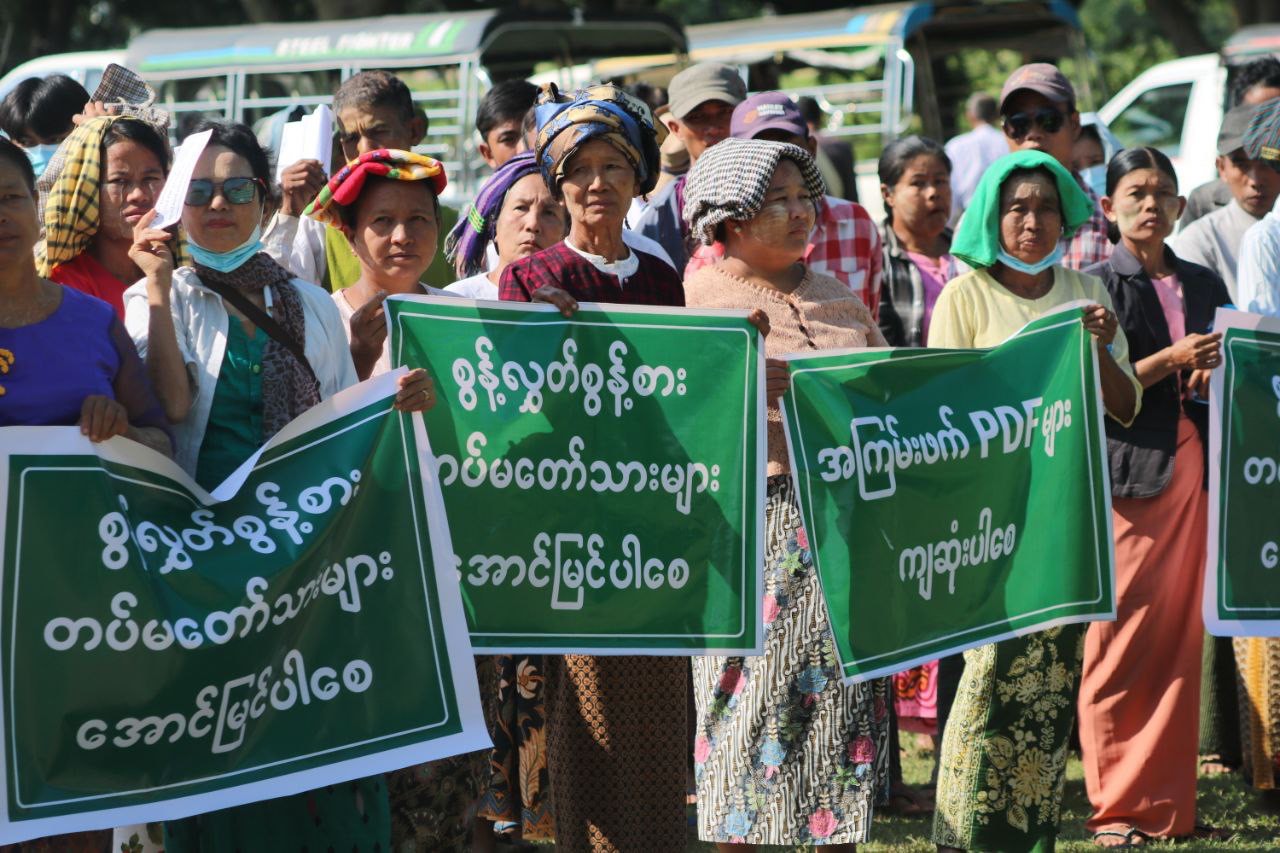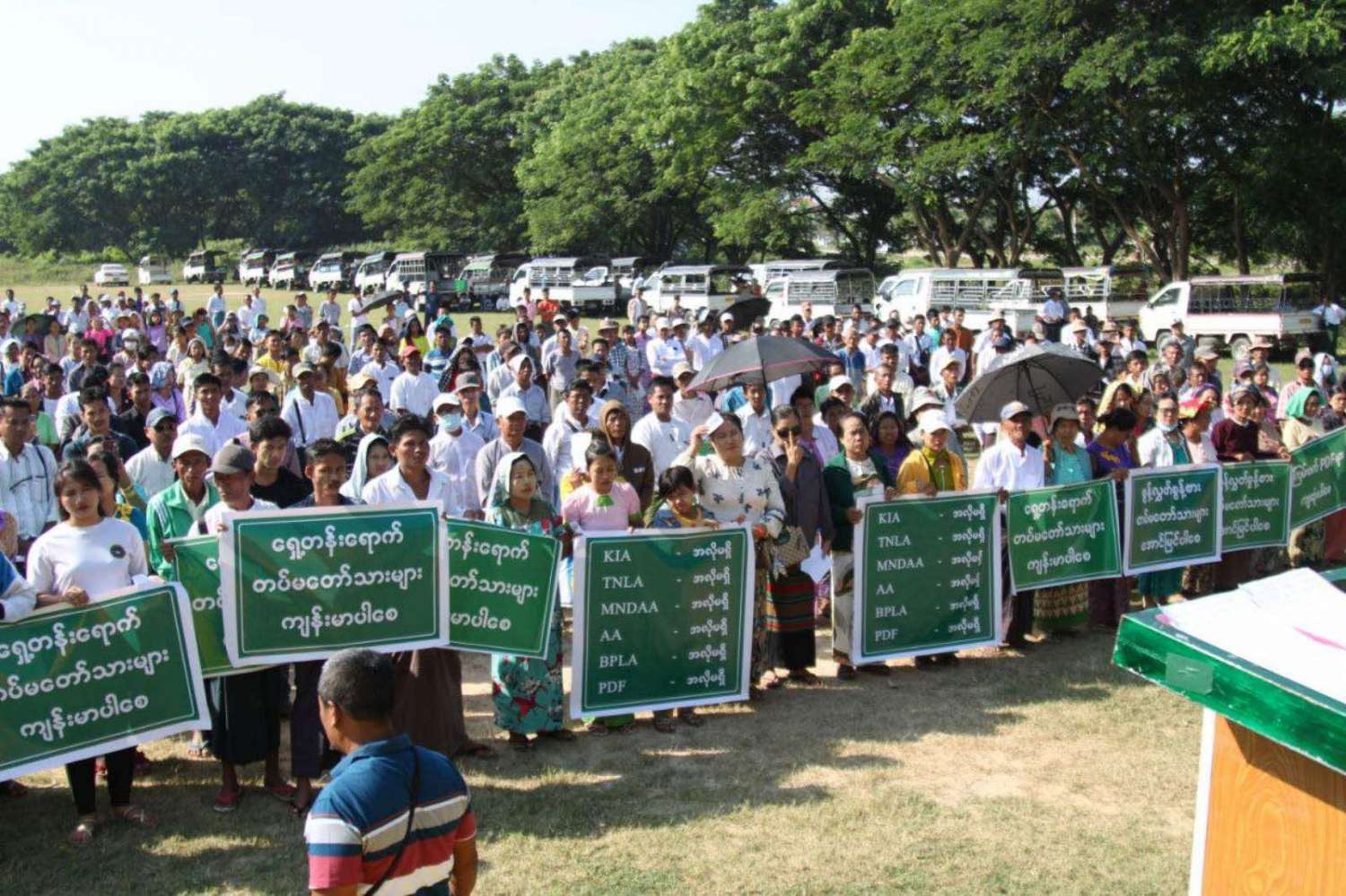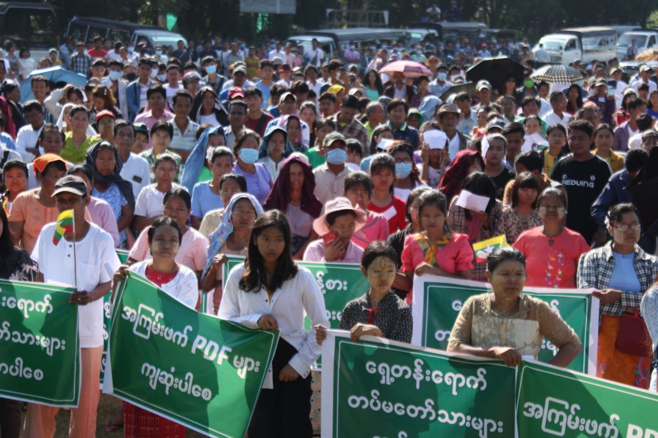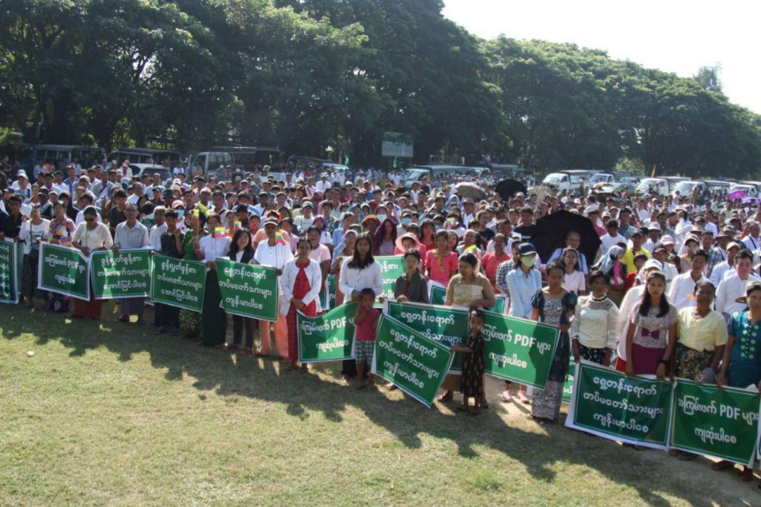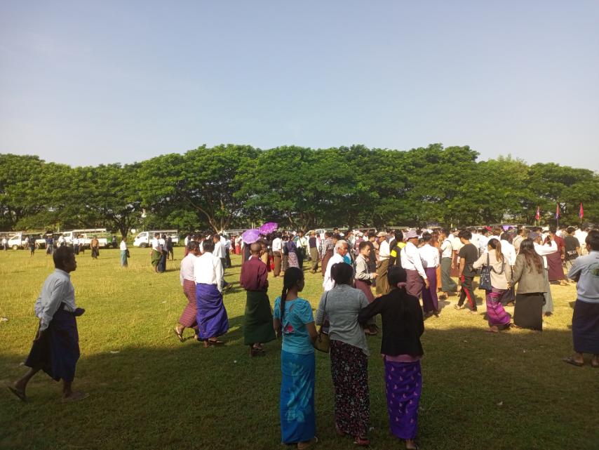 အဆိုပါ ထောက်ခံပွဲသို့ ပြည်ထောင်စုကြံ့ခိုင်ရေးနှင့်ဖွံ့ဖြိုးရေးပါတီမှ ဦးဆောင်၍ ပြည်ထောင်စု နယ်မြေ (၈) မြို့နယ်မှ တပ်မတော်ထောက်ခံအားပေးသူ ၂၂၀၀ ဦးခန့် လာရောက်ဝန်းရံ ထောက်ခံခဲ့ပြီး အမျိုးသားရေးတက်ကြွလှုပ်ရှားသူ ဦးဖိုးသိန်း၊ အမျိုးသားရေးတက်ကြွလှုပ်ရှားသူ ဒေါ်နန်းမြမြထွေး၊ အမျိုးသားရေးတက်ကြွလှုပ်ရှားသူ ဒေါ်ရွှေစင်တို့က ဂုဏ်ပြုအမှာ စကားပြောကြားပြီး ငြိမ်းချမ်းရေးလမ်းစဉ်အား ဆန့်ကျင်ပြီး တိုင်းပြည်အလုံးစုံပျက်စီး ရေးဆောင်ရွက်နေသည့် KIA ၊ AA ၊ MNDAA ၊ TNLA ၊ BPLA နှင့် PDF စသည့်အကြမ်းဖက်အဖွဲ့များအား ဆန့်ကျင်ရှုတ်ချကြောင်းနှင့် ရှေ့တန်းရောက် တပ်မတော်သားများအား အားပေးထောက်ခံ ကြောင်းစသည့် ကြွေးကြော်သံများ ကြွေးကြော်ပြီး အခမ်းအနားကို ရုပ်သိမ်းခဲ့ကြောင်း သိရသည်။