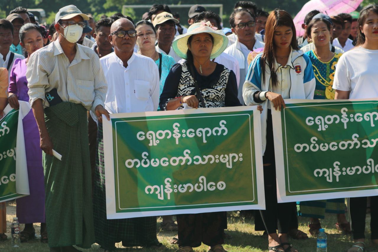 ပြည်ထောင်စုနယ်မြေ၊ နေပြည်တော်၊ ဇမ္ဗူသီရိမြို့နယ် ရွှေကြာပင်ရပ်ကွက် လူငယ်ဘောလုံးကွင်းတွင် အကြမ်းဖက်များရှုတ်ချပွဲနှင့် ရှေ့တန်းရောက်တပ်မတော်သားများအား အားပေးထောက်ခံပွဲ အခမ်းအနားကို ယနေ့နံနက်ပိုင်းက ကျင်းပပြုလုပ်ခဲ့ကြောင်း သိရသည်။
