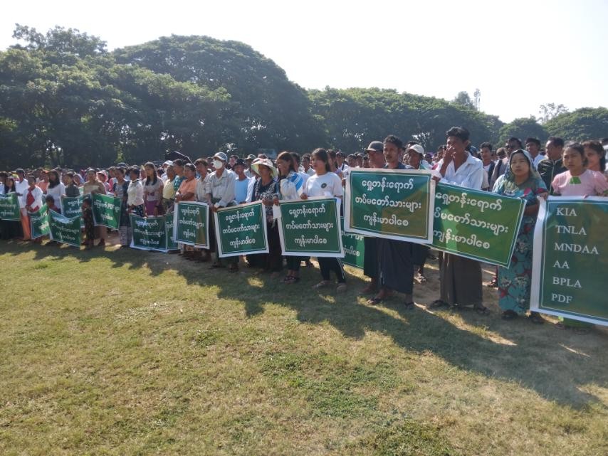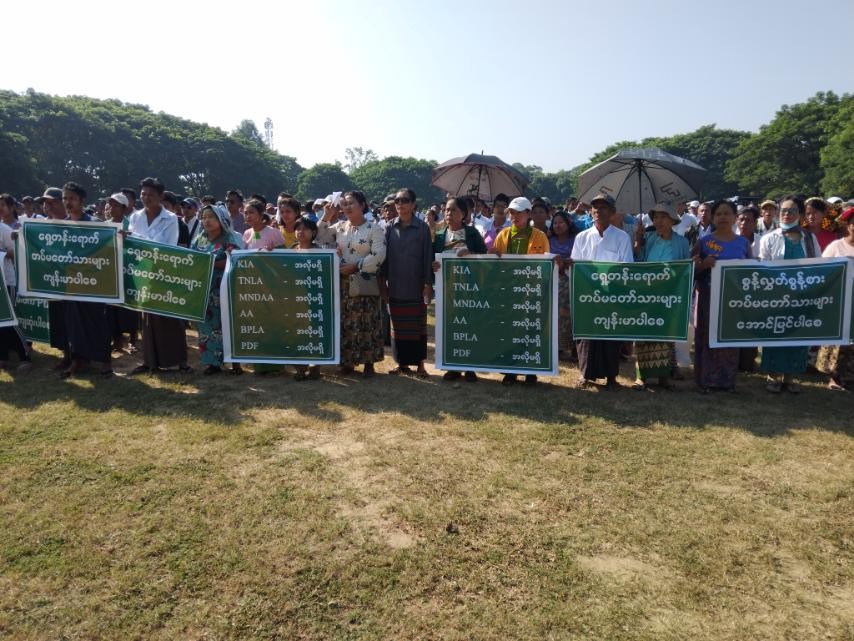 ထို့ပြင် နိုဝင်ဘာလ ၈ ရက်နှင့် နိုဝင်ဘာလ ၁၀ ရက်တို့တွင်လည်း ကချင်ပြည်နယ် မြစ်ကြီးနားမြို့ မနောကွင်းနှင့် မန္တလေးမြို့ပေါ်ရှိ လမ်းများ၊ မန္တလေးမြို့အဝင် အဝိုင်းထိပ်၊ မန္တလေးကျုံးဘေးနှင့် ဧရာဝတီရတနာပုံတံတားတို့တွင် အေးချမ်းစွာနေထိုင်လိုကြသည့် ပြည်သူများက အကြမ်းဖက်လက်နက်ကိုင် သောင်းကျန်းသူများအား အလိုမရှိကြောင်း ရှုတ်ချကြပြီး ရှေ့တန်းရောက် တပ်မတော်သားများအား ထောက်ခံအားပေးမှုကို ဆိုင်းဘုတ်များ ကိုင်ဆောင်၍ ဆန္ဒထုတ်ဖော်ပွဲများ ကျင်းပခဲ့ကြကြောင်းသိရသည်။