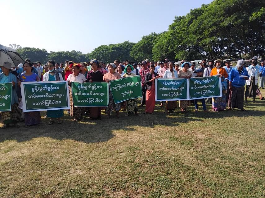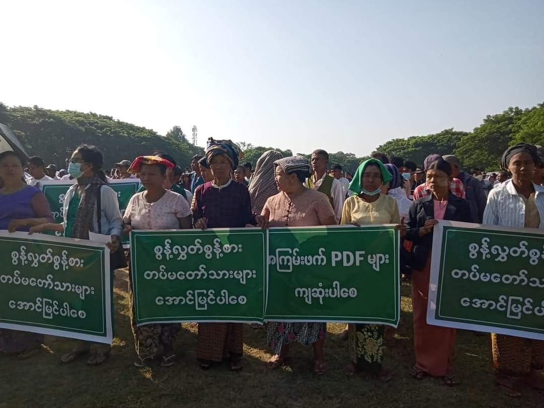 ထိုသို့ အားပေးထောက်ခံလျက်ရှိရာ ယနေ့ နံနက်ပိုင်းတွင် ပြည်ထောင်စုနယ်မြေ နေပြည်တော်၊ ဇမ္ဗူသီရိမြို့နယ် ရွှေကြာပင်ရပ်ကွက်ရှိ လူငယ်ဘောလုံးကွင်း၌ ပြည်ထောင်စု နယ်မြေ(၈) မြို့နယ်မှ ပြည်သူ လူထုအင်အား(၂၂၀၀)ခန့်သည် တိုင်းပြည်အလုံးစုံပျက်စီးရေး ဆောင်ရွက်နေကြသည့် KIA ၊ AA ၊ MNDAA ၊ TNLA ၊ BPLA နှင့် PDF အမည်ခံအကြမ်းဖက် လက်နက်ကိုင် သောင်းကျန်းသူများအား ဆန့်ကျင်ရှုတ်ချကြပြီး နိုင်ငံတော်ကာကွယ်ရေးနှင့် လုံခြုံရေးတာဝန် ထမ်းဆောင်နေကြသည့် ရှေ့တန်းရောက် တပ်မတော်သားများအား ထောက်ခံအားပေးပွဲကို ဆိုင်းဘုတ်များကိုင်ဆောင်၍ ဆန္ဒထုတ်ဖော်ကြသည်။