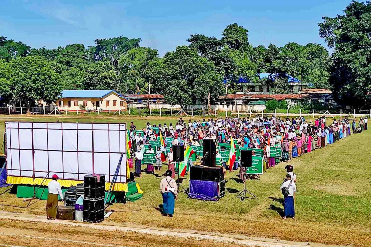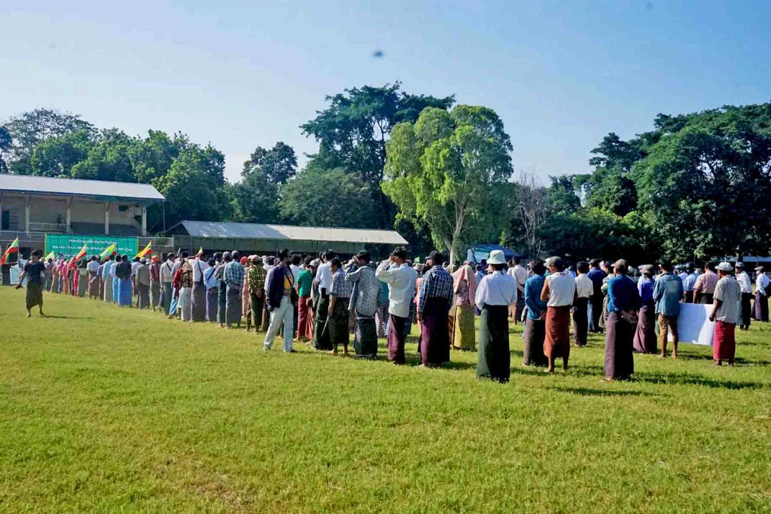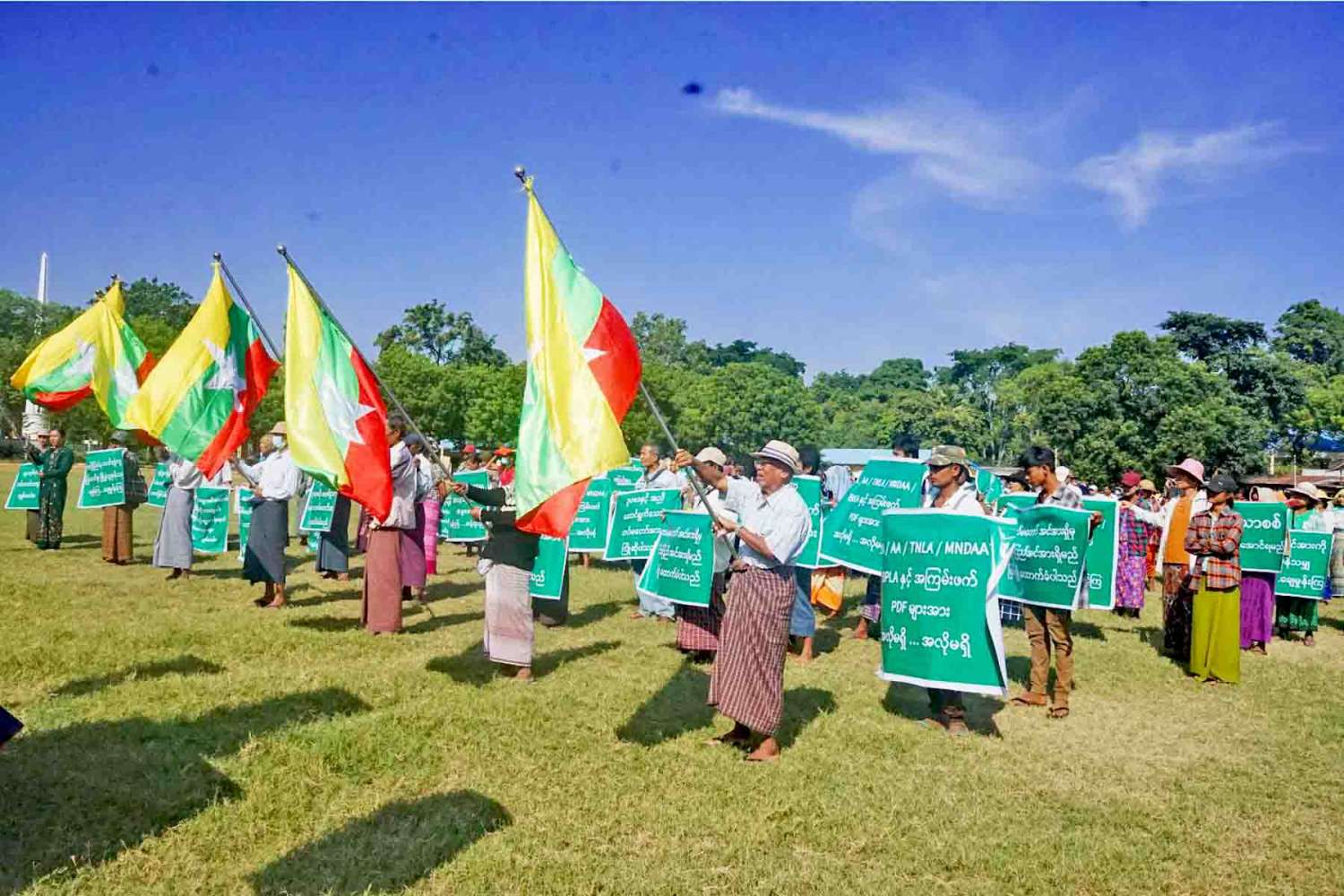 ထို့နောက် နံနက် ၁၀ နာရီအချိန်တွင် မကွေးခရိုင်အားကစားကွင်း၌ တိုင်းဒေသကြီးအတွင်းရှိ ငြိမ်းချမ်းရေး လိုလားသည့် ပြည်သူများက တိုင်းပြည်အလုံးစုံ ပျက်စီးရေး လုပ်ဆောင်နေကြသည့် KIA ၊ TNLA၊ MNDAA၊ AA ၊ BPLA နှင့် PDF အမည်ခံ အကြမ်းဖက် လက်နက်ကိုင်သောင်းကျန်းသူများအား ဆန့်ကျင်ရှုတ်ချခြင်းနှင့် နိုင်ငံတော်ကာကွယ်ရေးနှင့် လုံခြုံရေးတာဝန်ထမ်းဆောင်နေကြသည့် ရှေ့တန်းရောက်တပ်မတော်သားများအား ထောက်ခံပွဲအား အင်အား ၈၅၀ ဦးဖြင့် ဆောင်ရွက်ကာ နံနက် ၁၀ နာရီ ၅၀ မိနစ်အချိန်တွင် ရပ်နားခဲ့ကြောင်း သတင်းရရှိပါသည်။