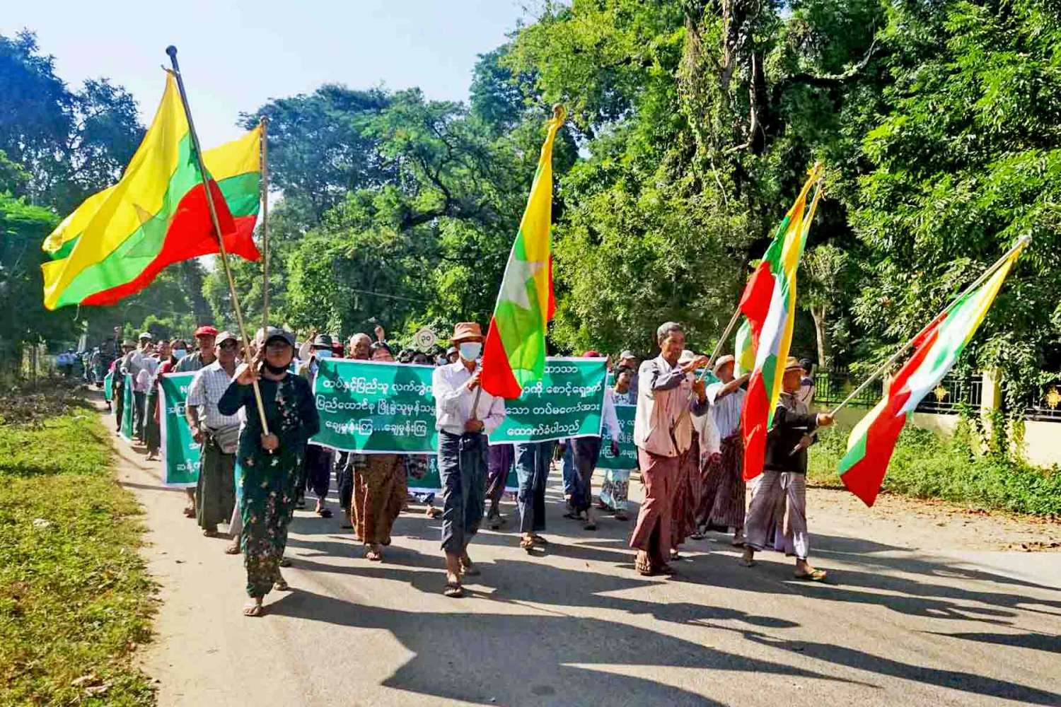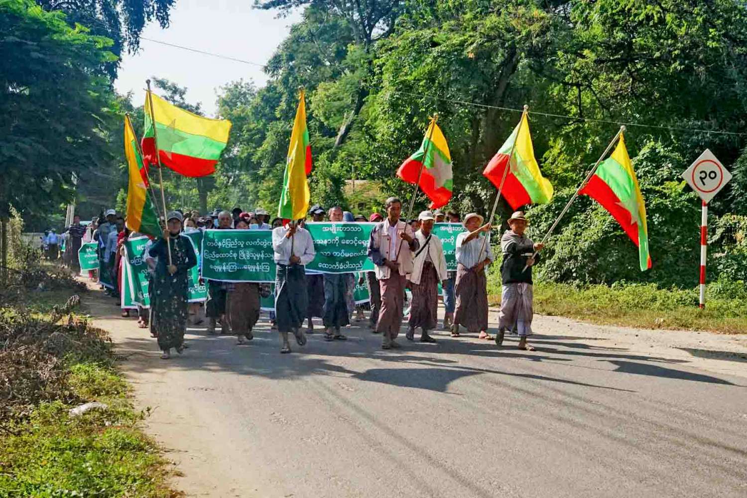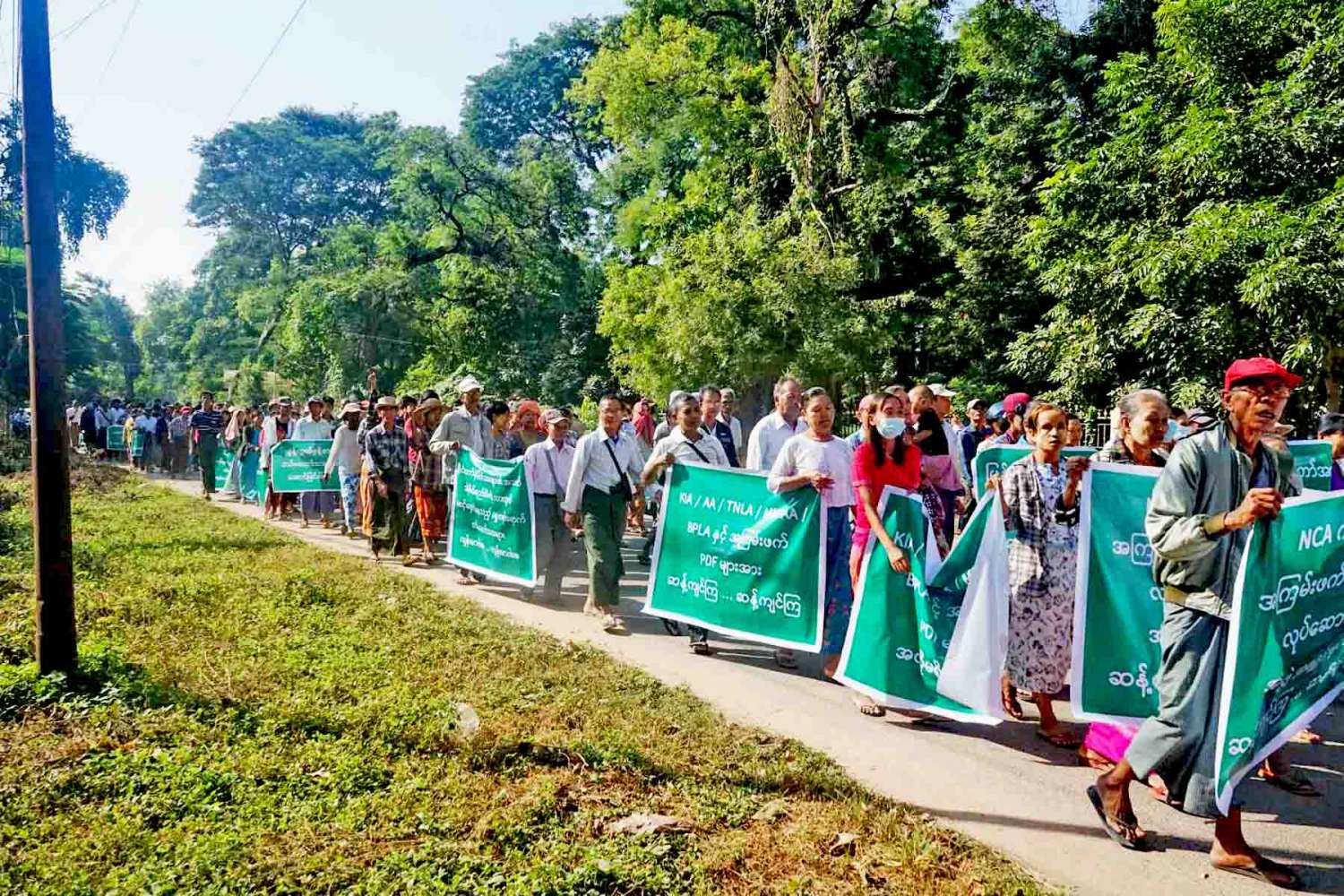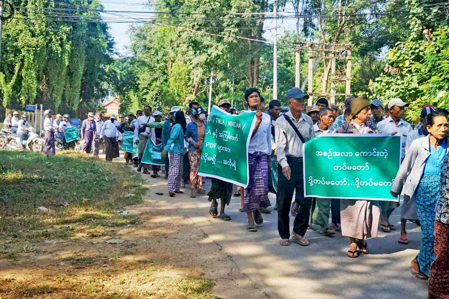 ထိုသို့ နိုင်ငံတော်ကာကွယ်ရေးနှင့် လုံခြုံရေးတာဝန်ထမ်းဆောင်နေကြသည့် တပ်မတော်သားများအား အားပေးထောက်ခံပွဲ ကျင်းပပြုလုပ်ရာ၌ တိုင်းဒေသကြီးအတွင်းရှိ ငြိမ်းချမ်းရေးလိုလားသည့် ပြည်သူများက မကွေးမြို့၊ ဆားရွှေကင်းရပ်ကွက် ကမ်းနားလမ်းနှင့် ဗျူဟာလမ်းဆုံတွင် စုရပ်ပြုလုပ်၍ ဗျူဟာလမ်းအတိုင်း မကွေးခရိုင်အားကစားကွင်းအထိ စီတန်းလှည့်လည်၍ လမ်းတစ်လျှောက်တွင် "တပ်မတော်ဖြိုခွဲမည့်အကြံ ဒို့လက်မခံ၊ အချုပ်အခြာအာဏာ ကာကွယ်စောင့်ရှောက်သည့်တပ်မတော် ဒို့တပ်မတော်၊ တရားသောစစ် အောင်ရမည်၊ နယ်မြေတည်ငြိမ်အေးချမ်းရေး ဒို့အရေး၊ နိုင်ငံတော်နှင့် နိုင်ငံသားများ၏ အသက်အိုးအိမ်စည်းစိမ် ကာကွယ်စောင့်ရှောက်နေသည့် ရှေ့တန်းရောက်တပ်မတော်သားများ ကျန်းမာပါစေ၊ KIA ၊ AA ၊ TNLA ၊ MNDAA၊ BPLA နှင့် အကြမ်းဖက် PDF များအား ဆန့်ကျင်ကြ၊ တစ်နိုင်ငံလုံးပစ်ခတ်တိုက်ခိုက်မှုရပ်စဲရေးသဘောတူစာချုပ် (NCA) အောင်ရမည်၊ (NCA) ကို ဆန့်ကျင်ပြီး အကြမ်းဖက်အဖျက်အမှောက်လုပ်ဆောင်နေသည့် အဖွဲ့အစည်းများအား ဆန့်ကျင်ကြ၊ တရားဥပဒေစိုးမိုးရေးနှင့် ပြည်သူများ၏ အသက်အိုးအိမ်စည်းစိမ် ကာကွယ်ရေး ဒို့အရေး ၊ KIA ၊ AA ၊ TNLA ၊ MNDAA ၊ BPLA နှင့် အကြမ်းဖက် PDF များအား အလိုမရှိ" စသည့် ကြွေးကြော်သံများကို သံပြိုင်ရွတ်ဆိုကာ မကွေးခရိုင်အားကစားကွင်းအထိ ငြိမ်းချမ်းစွာ စီတန်းလှည့်လည်၍ ဆန္ဒဖော်ထုတ်ခဲ့ကြသည်။