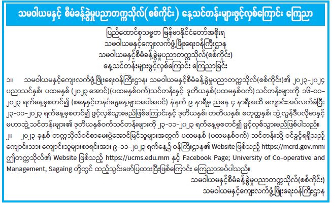 နေ့သင်တန်းများဖွင့်လှစ်ကြောင်းကြေညာ