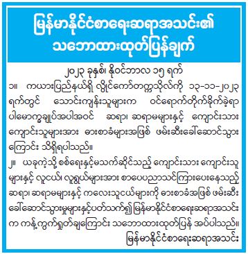 ဝန်ကြီးဌာန ကြေညာချက်များ