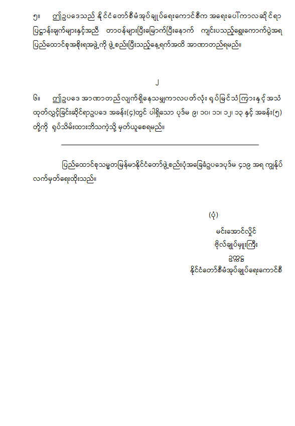 ဝန်ကြီးဌာန ကြေညာချက်များ