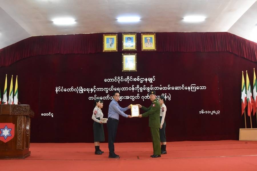 ထိုသို့ ပေးအပ်လျက်ရှိရာ ယနေ့တွင် ပဲခူးတိုင်းဒေသကြီးအစိုးရအဖွဲ့နှင့် ဌာနဆိုင်ရာ ဝန်ထမ်းများ၊ စေတနာရှင် အလှူရှင်များက အရှေ့မြောက်တိုင်းစစ်ဌာနချုပ်နယ်မြေအတွင်း နိုင်ငံတော်ကာကွယ်ရေးနှင့် လုံခြုံရေးတာဝန်များကို စွမ်းစွမ်းတမံ ထမ်းဆောင်လျက်ရှိသော လုံခြုံရေးတပ်ဖွဲ့ဝင်များအတွက် ဂုဏ်ပြုချီးမြှင့်ငွေများပေးအပ်ခြင်းကို တောင်ပိုင်းတိုင်း စစ်ဌာနချုပ်ရှိ အေးချမ်းဖြိုးခန်းမ၌ ပြုလုပ်ရာ တိုင်းဒေသကြီးဝန်ကြီးချုပ် ဦးမျိုးဆွေဝင်း၊ တိုင်းမှူး ဗိုလ်မှူးချုပ် ကြည်သိုက်နှင့် တာဝန်ရှိသူများ၊ စေတနာရှင် အလှူရှင်များ တက်ရောက်ကြသည်။ ယင်းနောက် တိုင်းဒေသကြီးဝန်ကြီးချုပ်က နိုင်ငံတော်ကာကွယ်ရေးနှင့် လုံခြုံရေးတာဝန်များကို စွမ်းစွမ်းတမံဆောင်ရွက်နေသော တပ်မတော်သားများအား ဂုဏ်ပြုစကားပြောကြားသည်။ ၎င်းနောက် ပဲခူးတိုင်းဒေသကြီးအစိုးရအဖွဲ့နှင့် ဌာနဆိုင်ရာဝန်ထမ်းများ၊ စေတနာရှင်အလှူရှင် ၄၄ ဦးက ဂုဏ်ပြုချီးမြှင့်ငွေ စုစုပေါင်းငွေကျပ် ၁၈၃၅ သိန်း ၅ သောင်းကို ပေးအပ်ရာ တိုင်းမှူးနှင့် တာဝန်ရှိသူများက လက်ခံရယူပြီး ဂုဏ်ပြုမှတ်တမ်းလွှာများ ပြန်လည်ပေးအပ်ကာ ကျေးဇူတင်စကား ပြန်လည်ပြောကြားခဲ့ကြောင်း သတင်းရရှိသည်။