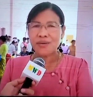 အန်တီရဲ့ရောဂါက ခန္ဓာကိုယ်မှာ အသီးလေးတွေနည်းနည်းပေါက်ပြီး ယားနေလို့ပါ။ အဲဒါ တပ်မတော်နယ်လှည့်ဆေးကုအဖွဲ့က ရောက်လာပြီးကုသပေးနေတယ်လို့ ကြားတဲ့ အတွက် လာပြီးကုသတာပါ။ ရောဂါဖြစ်နေတာက ခြောက်လလောက်ကြာသွားပါပြီ။ အပြင်မှာဆေးကုရင် ငါးသိန်းခြောက်သိန်းလောက်ကုန်မှာပါ။ ဒီမှာဆိုရင် ပိုက်ဆံလည်း တစ်ပြားမှမကုန်ဘူး။ အလကားကုပေးတယ်။ သောက်ဆေးတွေလည်းပေးတယ်။ အဲဒါကြောင့် လာကုတာပါ။ ဆေးကုသပေးတဲ့ ဆရာဝန်လေးတွေကလည်း မျက်နှာလေးတွေက ချိုချိုသာသာနဲ့ ကုသပေးပါတယ်။ လူနာတွေကိုလည်း နွေးနွေးထွေးထွေးဆက်ဆံပါတယ်။ အဲဒါကြောင့်လည်း လူတွေကလာပြီး ဆေးကုသကြတာများတယ်။ အခုလိုလာရောက် ကုသပေးတဲ့အတွက် ဝမ်းသာကြည်နူးခံစားရပါတယ်။ ဝမ်းလည်းဝမ်းသာပါတယ်။ နှစ်စဉ်နှစ်တိုင်းလည်း အခုလိုဘဲလာရောက်ကုသပေးကြပါတယ်။ အရင်နှစ်တွေကလည်း အခုလိုဘဲ လာရောက်ကု သပေးကြပါတယ်။ တစ်နှစ်မှာ နှစ်ခါသုံးခါလောက်ရောက်ကြပါတယ်။ ရောက်တိုင်းလည်း လူတွေအများကြီး လာရောက်ကုသကြပါတယ်။ နိုင်ငံတော်အကြီး အကဲတွေနဲ့ ဆေးကုသပေးတဲ့ ပါရဂူကြီးတွေကို အထူးဘဲကျေးဇူးတင်ရှိပါတယ်။ ကျန်းမာ ကြပါစေ၊ ချမ်းသာကြပါစေ၊ ဘေးဘယာကင်းရှင်းကြပါစေ၊ အန္တရာယ်ကင်းလို့ဘေးရှင်း ကြပါစေလို့ ဆုတောင်းပေး လိုက်ပါတယ်။