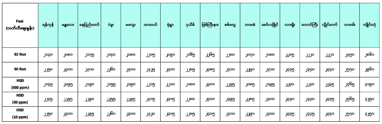 ရန်ကုန်မြို့နှင့်မန္တလေးမြို့အတွက် ရည်ညွှန်းလက်ကားဈေးနှုန်းများနှင့် ပြည်ထောင်စုနယ်မြေ နေပြည်တော်၊ တိုင်းဒေသကြီး/ပြည်နယ် မြို့တော်များအတွက် ရည်ညွှန်းလက်လီဈေးနှုန်းများ 11/17/2023