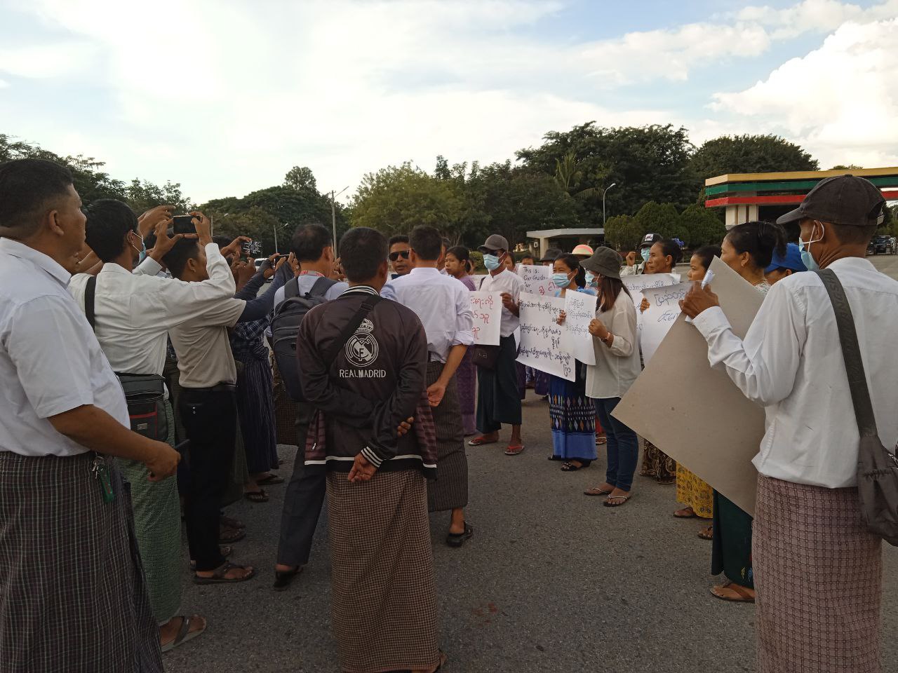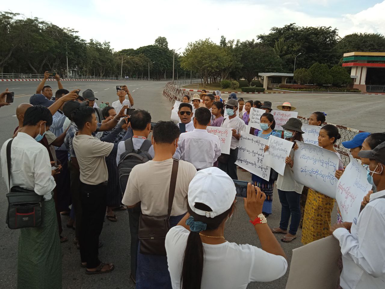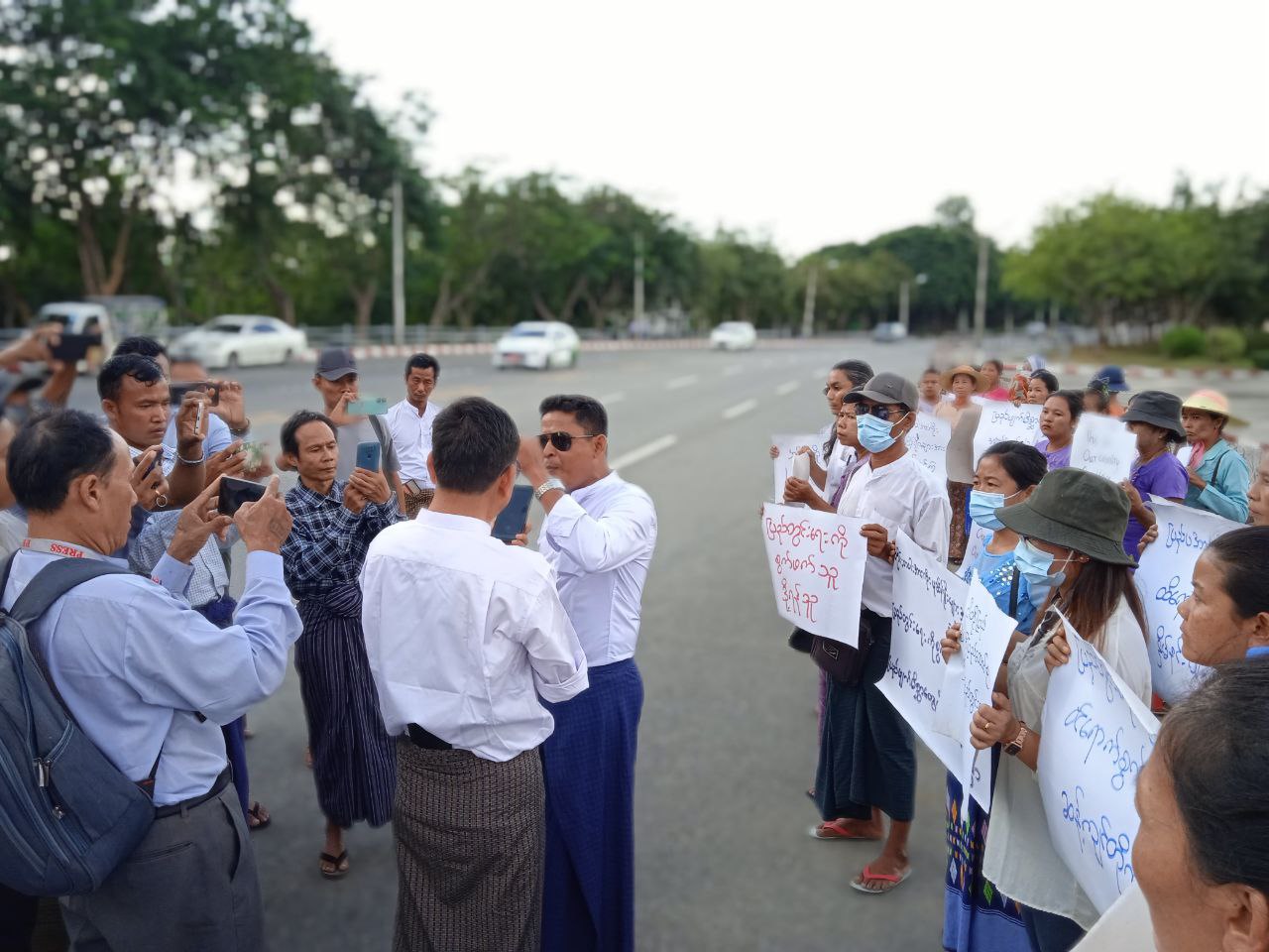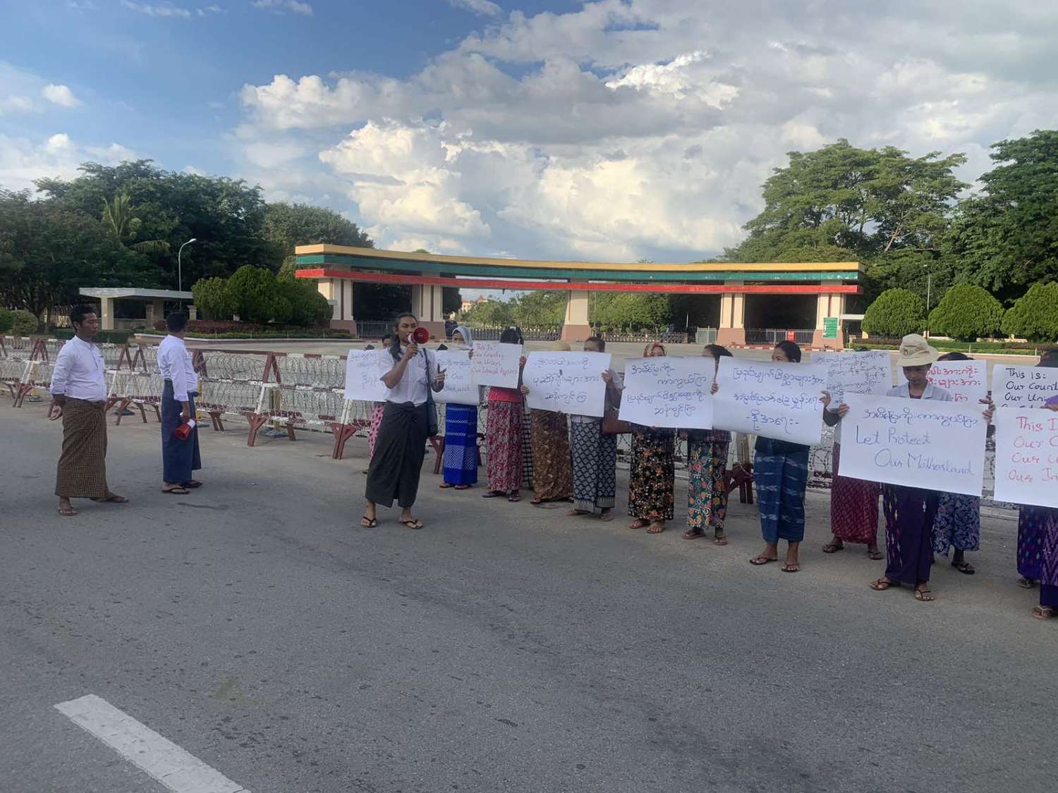 အဆိုပါ ကန့်ကွက်ရှုတ်ချပွဲသို့ ငြိမ်းချမ်းရေးကိုလိုလားသည့် ပြည်သူ ၅၀ ဦးခန့် တက်ရောက်ခဲ့ကြပြီး "တိုင်းတစ်ပါး အားကိုး ပုဆိန်ရိုးများအား ဆန့်ကျင်ကြ၊ အမိမြေကိုကာကွယ်ကြ၊ ပြည်ဖျက်မိစ္ဆာတွေ ကို ဆန့်ကျင်ကြ၊ ပြည်တွင်းရေးကို ဝင်ရောက်နှောင့်ယှက်သူ ဒို့ရန်သူ စသည့် ကြွေးကြော်သံများဖြင့် စုပေါင်းကြွေးကြော်ခဲ့ကြသည်။