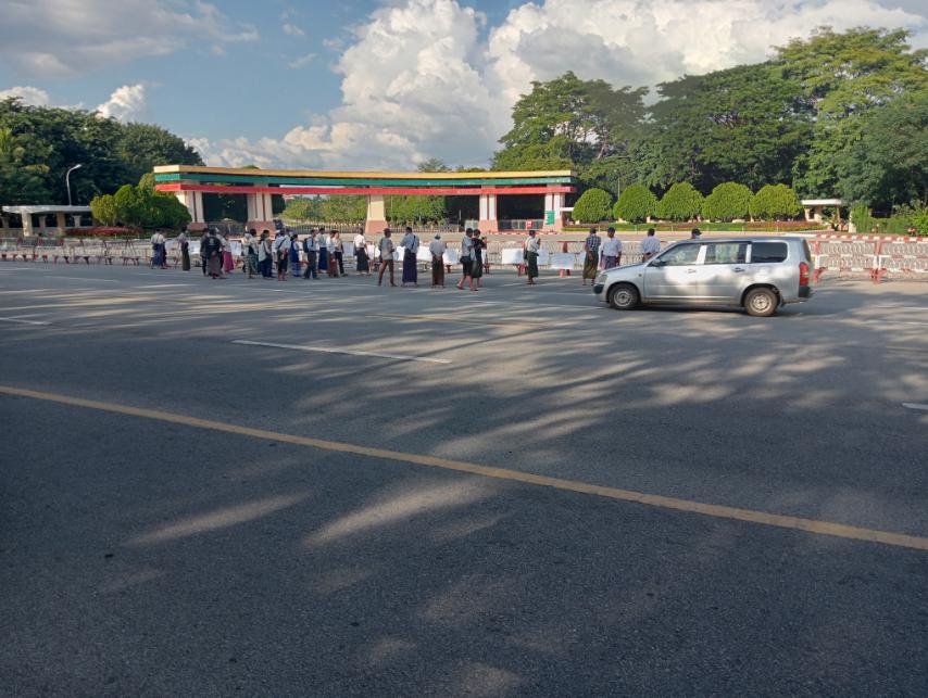 ပြည်ထောင်စုနယ်မြေ၊ နေပြည်တော်၊ ဇမ္ဗူသီရိမြို့နယ်၊ သပြေကုန်းရပ်ကွက်၊ မြို့တော်ခန်းမရှေ့ရှိ ပျဉ်းမနား-တောင်ညိုကားလမ်းပေါ်၌ ယမန်နေ့ညနေပိုင်းက အကြမ်းဖက်အဖွဲ့များနှင့် နောက်ကွယ်မှ ပံ့ပိုးနေသည့် နိုင်ငံများအား ကန့်ကွက်ရှုတ်ချပွဲ ပြုလုပ်ခဲ့ကြောင်း သိရသည်။