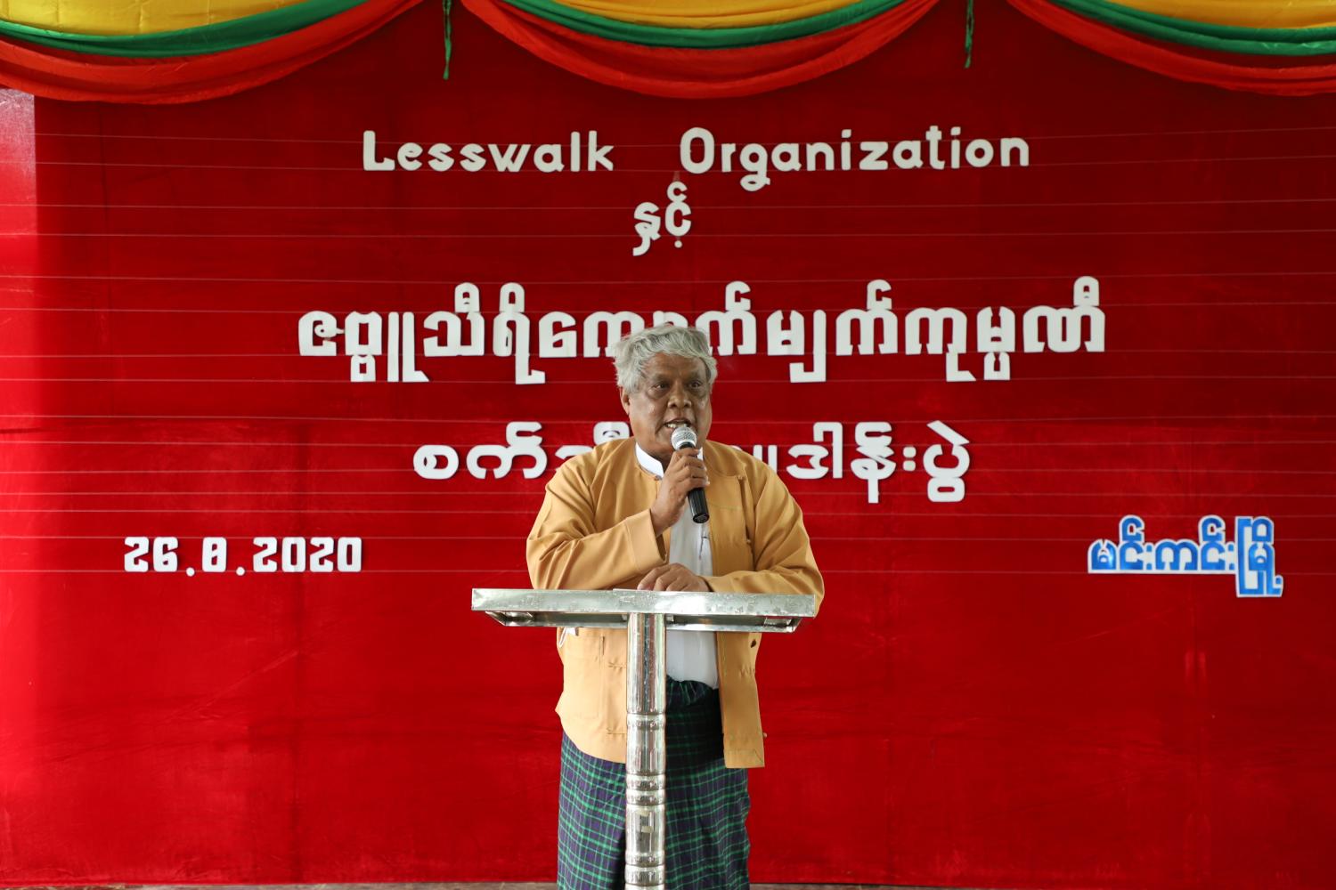 ဆက်လက်ပြီး Less Walk Organization နှင့် ဇမ္ဗူသီရိ ကျောက်မျက်ရတနာကုမ္ပဏီတို့ ကိုယ်စား ဦးသန်းဌေးက စက်ဘီးများလှူဒါန်းရခြင်းအပါ်သာ ပီတိစကားများကို ပြောကြားခဲ့သည်။ ထို့နောက် တိုင်းဒေသကြီး ဝန်ကြီးချုပ်နှင့် အဖွဲ့က မင်းကင်းမြို့နယ်အတွင်းရှိ (အထက)ကျောင်း(၁၁)ကျောင်းနှင့် အထက(ခွဲ)ကျောင်း (၁၆) ကျောင်း စုစုပေါင်းကျောင်း (၂၇)ကျောင်းမှ ကျောင်းအုပ်များနှင့် ကျောင်းသားကျောင်းသူများထံသို့ စက်ဘီး (၁၇၀) စီးကို ပေးအပ်လှူဒါန်းခဲ့ပြီး ပွင့်လျက် အထက ကျောင်းအုပ်ဆရာကြီး ဦးပွင့်က ကျေးဇူးတင်စကား ပြန်လည်ပြောကြားခဲ့ကာ အမှတ်တရ စုပေါင်းမှတ်တမ်းတင် ဓာတ်ပုံရိုက်ကူးခဲ့ကြကြောင်း သိရသည်။