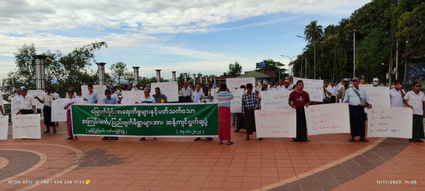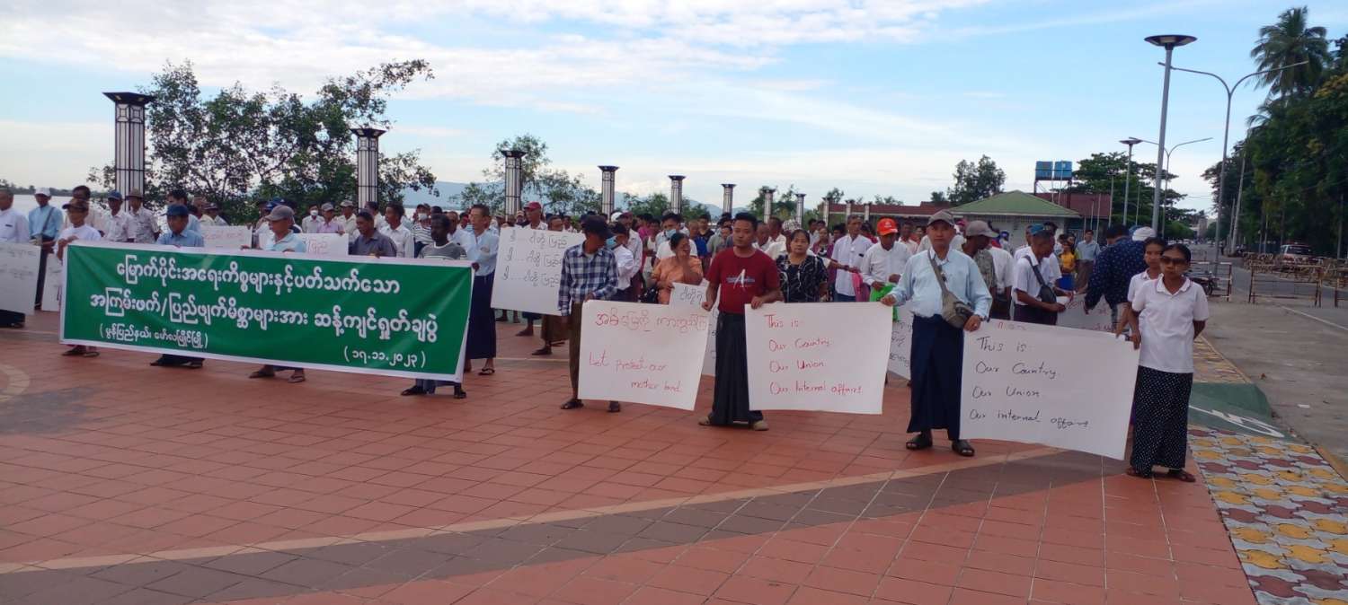 ၎င်းနောက် တက်ရောက်လာသော စစ်ကဲကုန်း၊ ရွှေတောင်၊ မရမ်းကုန်း၊ သာယာအေး စသည့်ရပ်ကွက်နေပြည်သူများ၊ လူမှုရေးအသင်းအဖွဲ့အင်အား ၅၀၀ ခန့်သည် မြောက်ပိုင်းအရေးကိစ္စများနှင့်ပတ်သက်သော အကြမ်းဖက်/ပြည်ဖျက်မိစ္ဆာများအား ဆန့်ကျင်ရှုတ်ချပွဲစာသားပါ ဗီနှိုင်းဆိုင်းဘုတ်အားစိုက်ထူပြီး အမိမြေကို ကာကွယ်ကြ၊ ပြည်တွင်းရေးကို စွက်ဖက်သူ ဒို့ရန်သူ၊ ပြည်ဖျက်မိစ္ဆာတွေကို ဆန့်ကျင်ကြ၊ ပြည်ဖျက်မိစ္ဆာများအား အမြစ်ဖြတ်ခြေမှုန်းရေး ဒို့အရေး၊ တိုင်းတစ်ပါး အားကိုးပုဆိန်ရိုးများအား ဆန့်ကျင်ကြ၊ ဒါငါတို့ပြည်၊ ဒါငါတို့ပြည်ထောင်စု၊ ဒါငါတို့ပြည်တွင်းရေး နှောင့်ယှက်သွေးခွဲသူများအား ဆန့်ကျင်ကြဟူသော ကြွေးကြော်သံ များကြွေးကြော်ခဲ့ကြကြောင်း သိရသည်။