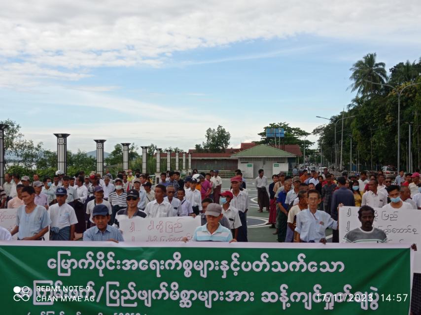 မွန်ပြည်နယ်၊ မော်လမြိုင်မြိုနယ်တွင် မြောက်ပိုင်းအရေးကိစ္စများနှင့်ပတ်သက်သော အကြမ်းဖက်/ပြည်ဖျက်မိစ္ဆာများအား ဆန့်ကျင်ရှုတ်ချပွဲကို ယနေ့မွန်းလွဲ ၃ နာရီခန့်က စစ်ကဲကုန်းရပ်ကွက်၊ ကမ်းနားလမ်း၊ ထားဝယ်တံတားအနီး ကစားကွင်းနေရာ (ယခင်ရေပေါ်ညဈေး) တွင် ကျင်းပခဲ့ကြောင်း သိရသည်။