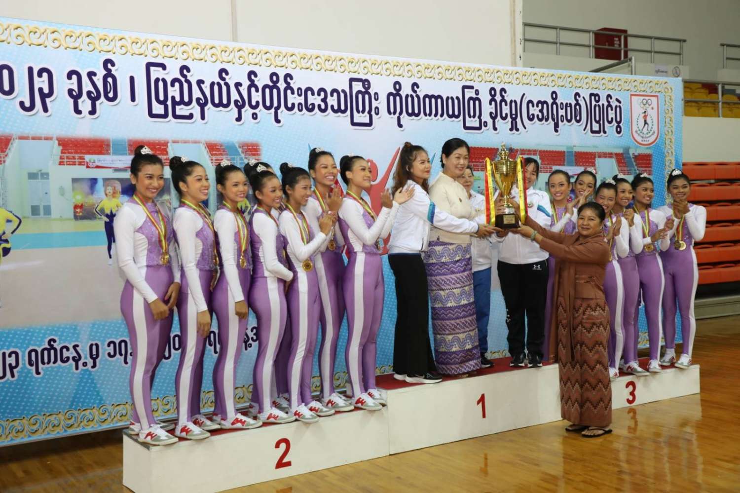 ထို့နောက် ဆုချီးမြှင့်ခြင်း အခမ်းအနားကို ဆက်လက်ကျင်းပရာ နိုင်ငံတော်စီမံအုပ်ချုပ်ရေးကောင်စီအဖွဲ့ဝင် ဦးရွှေကြိမ်းက ကိုးယောက်တွဲပြိုင်ပွဲတွင် ပထမဆုရရှိသည့် ရန်ကုန်တိုင်းဒေသကြီး၊ ဒုတိယဆုရရှိသည့် ကရင်ပြည်နယ်နှင့် တတိယဆုရရှိသည့် ကချင်ပြည်နယ်အသင်းတို့ကိုလည်းကောင်း၊ နိုင်ငံတော်စီမံအုပ်ချုပ်ရေးကောင်စီအဖွဲ့ဝင် ဒေါက်တာဘရွှေက Physical Fitness Dance ပြိုင်ပွဲတွင် ပထမဆုရရှိသည့် ရန်ကုန်တိုင်းဒေသကြီး၊ ဒုတိယဆုရရှိသည့် မန္တလးတိုင်းဒေသကြီးနှင့် တတိယဆုရရှိသည့် ရှမ်းပြည်နယ်အသင်းတို့ကိုလည်းကောင်း၊ နိုင်ငံတော်စီမံအုပ်ချုပ်ရေးကောင်စီအဖွဲ့ဝင် ဒေါက်တာမှုထန်က သုံးယောက်တွဲပြိုင်ပွဲတွင် ပထမဆုရရှိသည့် ကချင်ပြည်နယ်၊ ဒုတိယဆုရရှိသည့် ရန်ကုန်တိုင်းဒေသကြီးနှင့် တတိယဆုရရှိသည့် စစ်ကိုင်းတိုင်းဒေသကြီးအသင်းတို့ကိုလည်းကောင်း တစ်ဦးချင်း ဂုဏ်ပြုဆုတံဆိပ်များနှင့် ဂုဏ်ပြုဆုငွေများ ပေးအပ်ချီးမြှင့်ကြသည်။