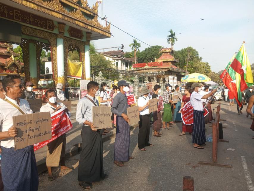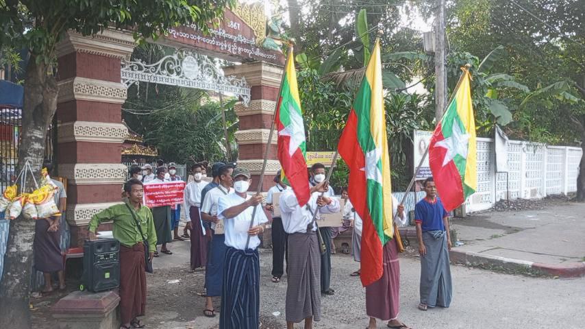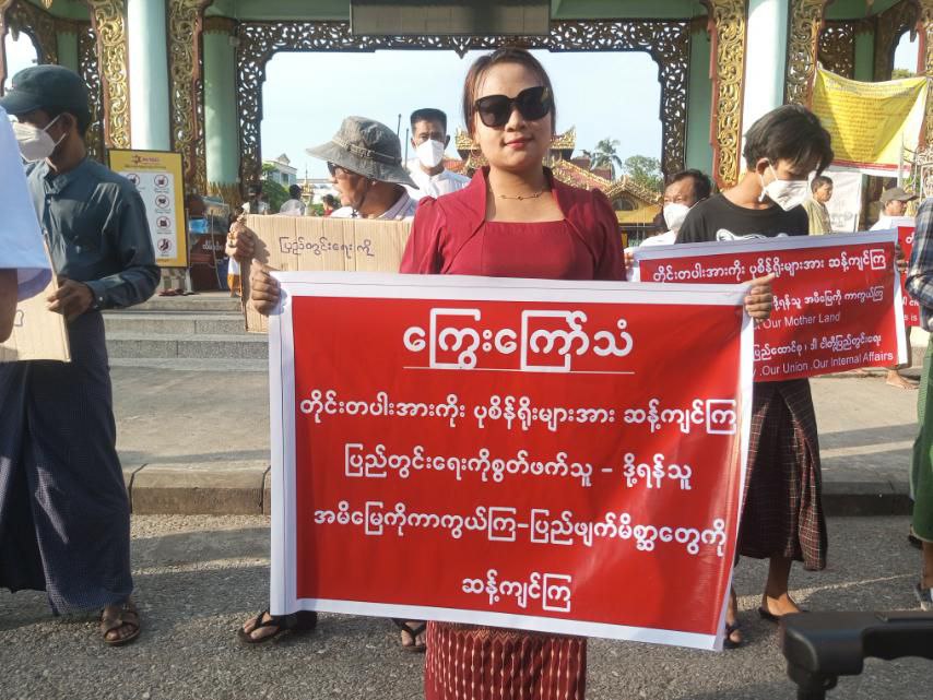 ရန်ကုန်တိုင်းဒေသကြီး၊ ဗဟန်းမြို့နယ်၊ ကြေးသွန်းဘုရားရှေ့တွင် ယနေ့ညနေ ၄ နာရီက ပြည်တွင်းရေးဝင်ရောက်စွက်ဖက်မှုများအား ဆန့်ကျင်ကန့်ကွက်ရှုတ်ချပွဲကို အမျိုးသားရေးလှုပ်ရှားသူများက ဦးဆောင်ကျင်းပခဲ့သည်။