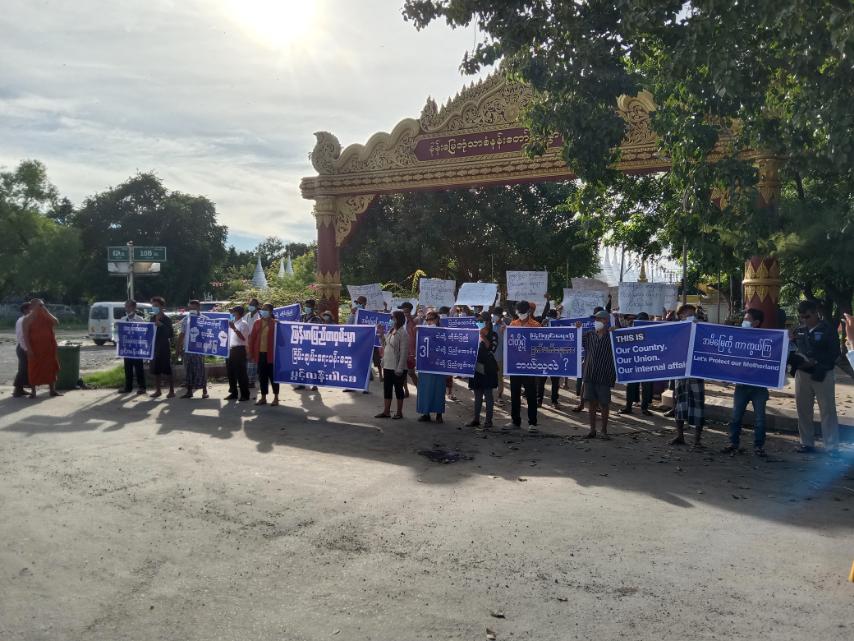 မြန်မာ့ပြည်တွင်းအရေးကို ဝင်ရောက်စွက်ဖက်နေသူများအား ရှုတ်ချဆန္ဒထုတ်ဖော်ပွဲကို ယနေ့မွန်းလွဲ ၃ နာရီက မန္တလေး၊ အောင်မြေသာစံမြို့နယ်၊ ဒေါနဘွားရပ်ကွက်၊ ၆၂×၆၆ လမ်းကြား၊ ၁၁×၁၂ လမ်းကြားရှိ နန်းမြေဘုံသာစံနန်းတော်ရာ စန္ဒမုနိဘုရားအရှေ့မုခ်၌ ပြုလုပ်ခဲ့သည်။