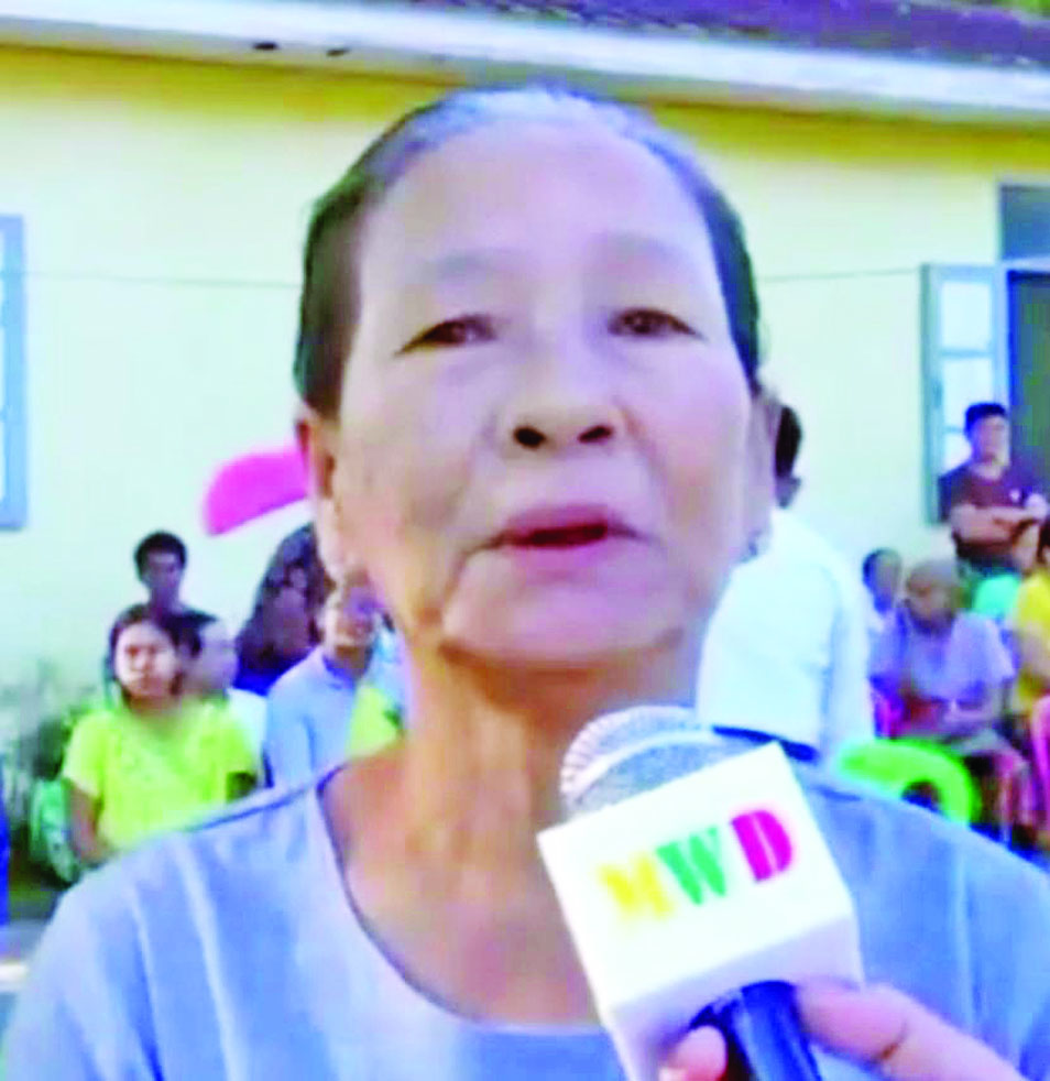 တပ်မတော်နယ်လှည့် ဆေးကုသရေးအဖွဲ့ လာတယ်ဆိုလို့ ကွင်းဝိုင်းကျေးရွာကနေ ဆေးလာကုတာပါ။ ဆီးချိုရောဂါဖြစ်နေတာကတော့ ကြာပါပြီ။ ၁၀ နှစ်လောက်ရှိပါပြီ။ သည်းခြေမှာ ကျောက်တည်တာက ငါးနှစ် ခြောက်နှစ်လောက် ရှိပါပြီ။ သက်သာလိုက် ပြန်ပေါ်လိုက် ဖြစ်နေတော့ တပ်မတော်နယ်လှည့်ဆေးကုသရေးအဖွဲ့ကို လာပြတာပါ။ နံကြိုနံကြားက အောင့်တယ်။ ဆီးချိုတွေ တက်လာပြီဆိုရင် ခေါင်းတွေမူးတယ်၊ ရင်ထဲမှာပူပြီးတော့ နေလို့မရထိုင်လို့မရ၊ ရီဝေထိုင်းမှိုင်းပြီး မျက်စိတွေဆိုရင်လည်း ဘာမှမမြင်တော့ဘူး။ အဲဒီလိုတွေဖြစ်တာပါ။ အပြင်မှာဆိုတော့လည်း ငွေရေးကြေးရေး ကမတတ်နိုင်ဘူးလေ။ ဆေးတောင်မှ ငွေရေးကြေးရေးအခက်အခဲကြောင့် တစ်လစာမဝယ်နိုင်တော့ဘူး။ အခုလိုအဘွားတို့ကို အခမဲ့လာရောက်ကုသပေးတဲ့အတွက် ဆေးဝါးကအစ စမ်းသပ်မှုတွေအဆုံး ကုသပေးလို့ ပါရဂူကြီးတွေ၊ ဒေါက်တာကြီးတွေကို လှိုက်လှိုက်လှဲလှဲ ကျေးဇူးတင်ပါတယ်။ ဝမ်းလည်းသာပါတယ်။ အခုလိုစီစဉ်ပေးတဲ့ တပ်မတော်အကြီး အကဲနဲ့တကွ ဆရာဝန်ကြီးများ အားလုံးကို ကျေးဇူးတင်ပါတယ်။