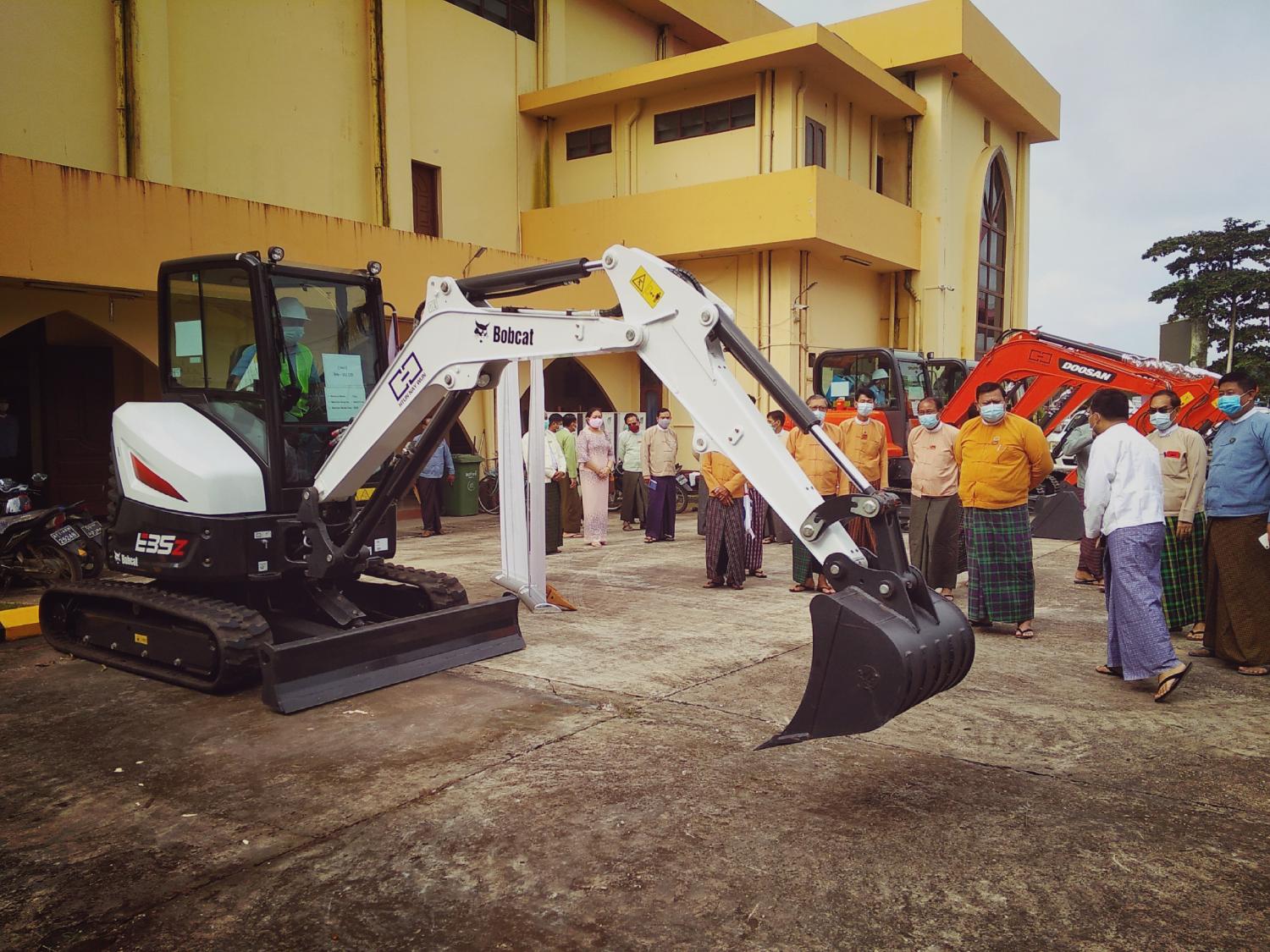 ဧရာဝတီတိုင်းဒေသကြီးအစိုးရအဖွဲ့၏ ၂၀၁၉-၂၀၂၀ ဘဏ္ဍာရေးနှစ် တိုင်းဒေသကြီး အစိုးရအဖွဲ့၏ ဖြည့်စွက်ခွင့်ပြုငွေ (ဒေသဖွံ့ဖြိုးရေးရံပုံငွေ) ဖြင့် ဝယ်ယူထားသော စက်ယန္တရားများကို မြို့နယ်/ မြို့စည်ပင်သာယာရေး ကော်မတီများနှင့် ခရိုင်ကျေးလက်ဒေသ ဖွံ့ဖြိုးတိုးတက်ရေးဦးစီးဌာနများသို့ လွှဲပြောင်းပေး အပ်ခြင်းကို ယနေ့ နံနက် ၈ နာရီက ပုသိမ်မြို့ မြို့တော်ခန်းမတွင် ကျင်းပခဲ့သည်။