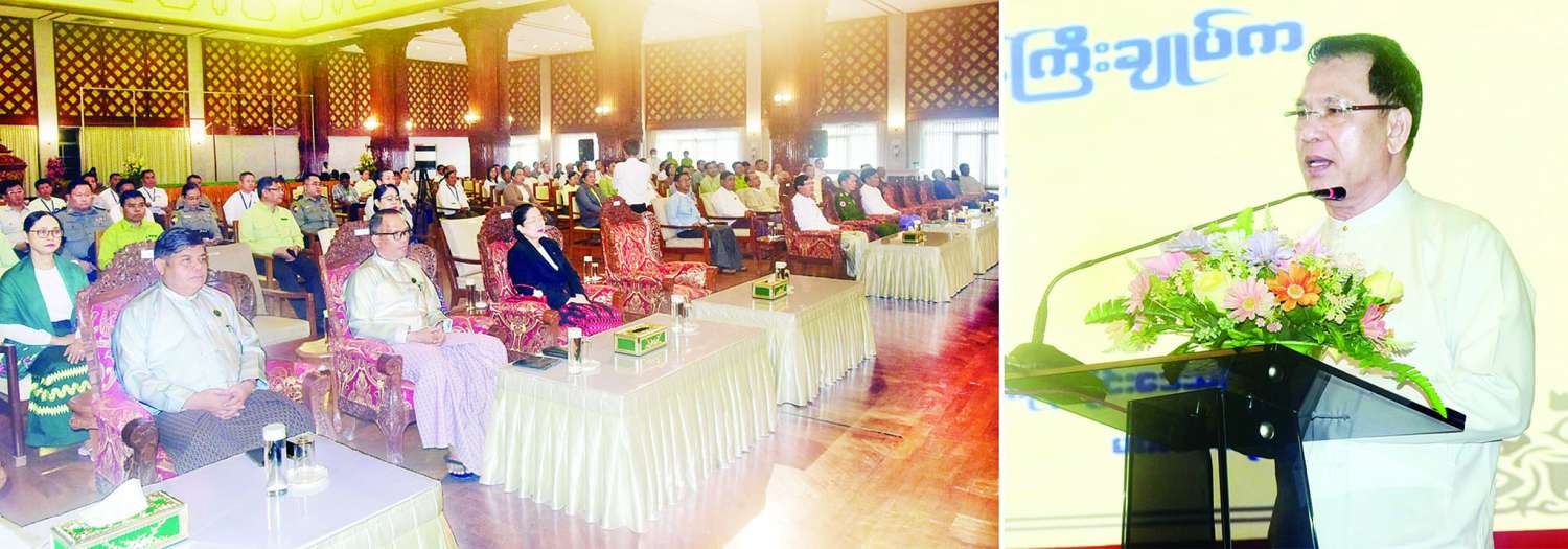 နိုင်ငံတော်က စာပေလောကသားများ၊ စာပေပညာရှင်စာရေးဆရာကြီးများအား တတ်စွမ်းသရွေ့ ကြည့်ရှုစောင့်ရှောက်ပေးလျက်ရှိပါကြောင်း၊ လက်ရှိဖြစ်ပွားနေသည့် ရှမ်းပြည်နယ်မြောက်ပိုင်း ကိစ္စရပ်များတွင် သတင်းတု၊ သတင်းမှားများကြောင့်၊ တိုင်းရင်းသားပြည်သူများ ပိုမိုဒုက္ခရောက် စေမည့်ဘေးမှ ကင်းဝေးနိုင်စေရေးအတွက် စာပေပညာရှင် စာရေးဆရာကြီးများက မိမိတို့ နားလည် တတ်ကျွမ်းသည့် စာပေကလောင်စွမ်းအားဖြင့် နိုင်ငံနှင့် လူမျိုးအတွက် သတင်းတု၊ သတင်းမှား များကို တိုက်ထုတ်ချေဖျက်၍ သတင်းမှန်များ ဖော်ပြရေးသားပေးကြစေလိုပါကြောင်း ပြောကြား သည်။