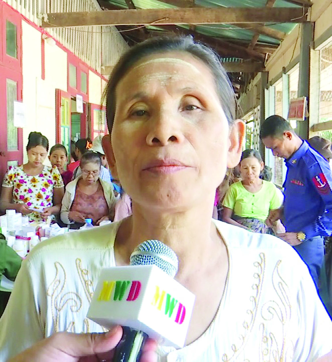 မျက်နှာမှာ အဖုတွေဖြစ်နေလို့ဆိုပြီး အရေပြားလာပြတာပါ။ တွေ့ရာမျက်နှာသစ်နဲ့ မသစ်ကြပါနဲ့။ နောက်ပြီးတော့ အပြင်သွားလို့ရှိရင် ပါးစပ်နှာခေါင်းစည်းတွေ တပ်ဆင်ပါ။ ဖုန်မှုန့်တွေကြောင့်လည်း မျက်နှာမှာအဖုတွေ ဖြစ်တယ်လို့ပြောတယ်။ ဆေးထုတ်ပေးလိုက်တယ်။ စာအုပ်ထဲမှာ ဆေးနာမည် ရေးပေးတယ်။ သိပ်ပြီး ပိုက်ဆံမတတ်နိုင်တဲ့သူတွေ၊ နောက်ပြီးတော့ အဆင်မပြေတဲ့သူတွေအတွက် အဆင်ပြေတာပေါ့။ သွားနဲ့ခံတွင်းပါရဂူ၊ အရိုးအကြောပါရဂူ၊ မျက်စိပါရဂူတွေလည်းပါတယ်။ နှာခေါင်းခွဲစိတ်ပါရဂူတွေလည်း ပါပါတယ်။ လာရောက် ကုသပေးတဲ့အဖွဲ့ကိုလည်း ကျွန်မက ပြည်သူတွေ ကိုယ်စားကျေးဇူးတင်ပါတယ်။ ပရဟိတမျိုးတွေလည်း ဆက်ပြီးလုပ်နိုင်ပါစေလို့ ဆုတောင်းပေးပါတယ်။