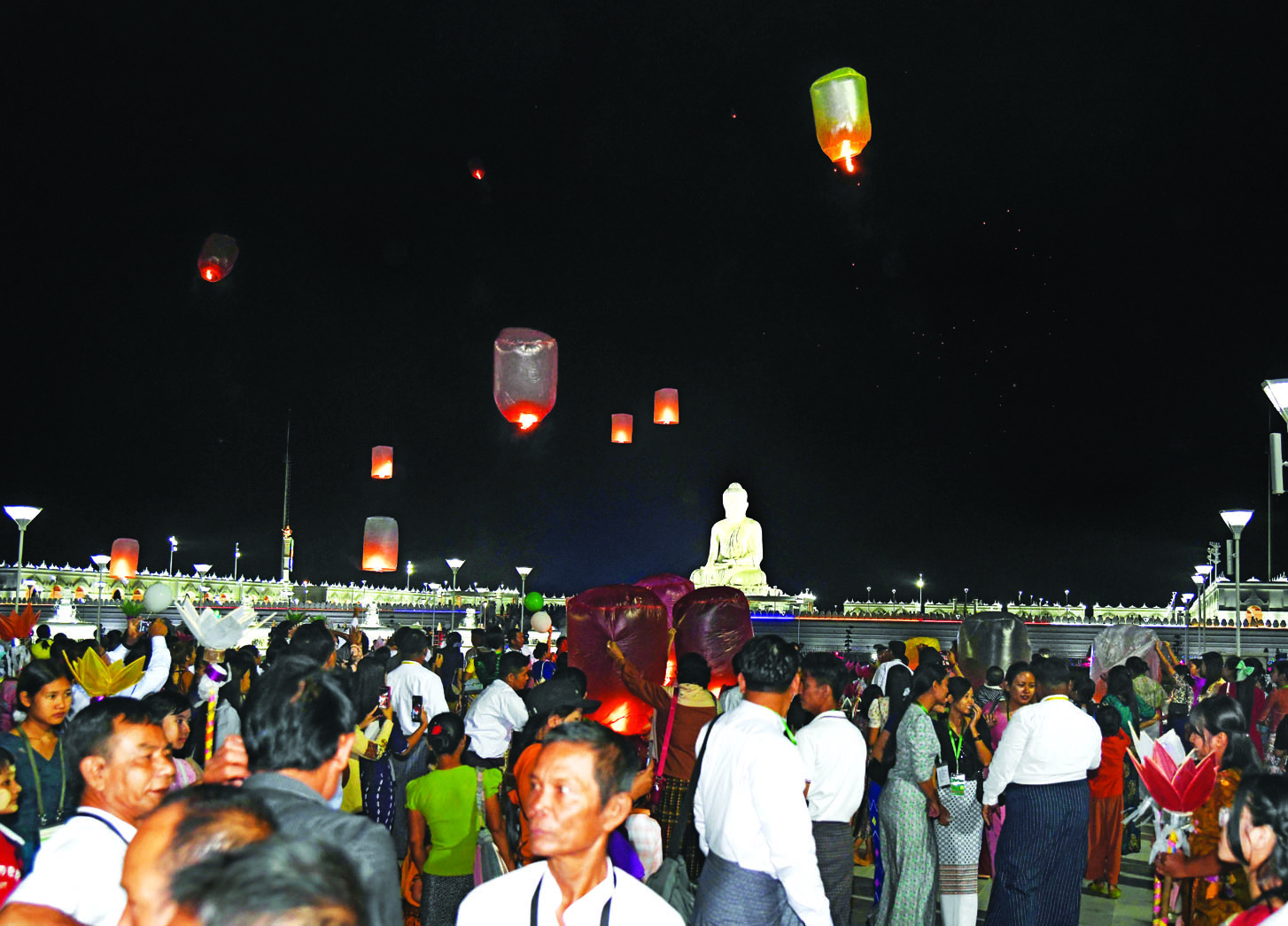 ထို့ပြင် မြတ်စွာဘုရားရှင်အား မီးပုံးပျံများ လွှတ်တင်၍ ပူဇော်ခြင်းကုသိုလ်ထူးကို ရရှိခံစားနိုင်စေရန် စီစဉ်ဆောင်ရွက်ထားရှိသည့်အတွက် မီးပုံးပျံမလွှတ်တင်မီ အစောပိုင်းကပင် ဘုရားပရိဝုဏ်အတွင်း အနယ်နယ်အရပ်ရပ်မှ ဘုရားဖူးလာပြည်သူများဖြင့် အထူးစည်ကားလျက်ရှိပြီး မီးပုံးပျံများလွှတ်တင်၍ မြတ်စွာဘုရားရှင်အား ပူဇော်မည့်အချိန်ရောက်ရှိသည့်အခါတွင် ဘုရားဝင်းအတွင်းသတ်မှတ် နေရာများအလိုက် မီးပုံးပျအသေးများ၊ အလှညမီးကြီးနှင့် စိန်နားပန်မီးပုံးပျံကြီးများ လွှတ်တင်ပူဇော်ခြင်းတို့ဖြင့်လည်း နေပြည်တော် တန်ဆောင်မုန်းလ၏ ညအလှကို ပိုမိုပေါ်လွင်စေခဲ့သည့်အပြင် ဗုဒ္ဓဥယျာဉ် ဝတ္ထုကံတော်အတွင်း၌လည်း LED မီးများဖြင့် အလှဆင်ပူဇော်ထားရှိသည့်အတွက် ခမ်းနားထည်ဝါစွာ တည်ထားပူဇော်ထားသည့် ဘုရား၊ စေတီ၊ ပုထိုးများ၏ သပ္ပာယ်မှုများနှင့် အံ့မခန်းဗိသုကာလက်ရာများကိုလည်း လာရောက်ကြသည့် ဘုရားဖူးလာပြည်သူများ တစ်နှစ်တွင် တစ်ကြိမ်သာကြုံတွေ့ရမည့် တန်ဆောင်တိုင်မီးထွန်းပွဲတော်နှင့်ယှဉ်တွဲ၍ ဖူးမြော်ကြည်ညိုလေ့လာနိုင်ကြမည်ဖြစ်သည်။
