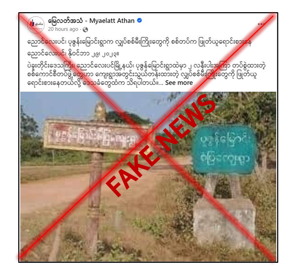 ပဲခူးတိုင်းဒေသကြီး၊ ညောင်လေးပင်မြို့နယ်၊ ပုဇွန်မြောင်းရွာ၌ တပ်မတော်မှ ကျွဲ၊ နွားများ၊ အိမ်ထောင်ပရိဘောဂများအပါအဝင် ကျေးရွာအတွင်း သွယ်တန်းထားသည့် လျှပ်စစ်မီးကြိုးများအား ဖြုတ်ယူရောင်းစားနေကြောင်း၊ လျှပ်စစ်မီးကြိုးများ မရှိသလောက်ဖြစ်နေပြီး ကျေးရွာအတွင်း မီးလင်းခြင်း မတွေ့ရတော့ကြောင်း စသည်ဖြင့် ဒေသခံများထံမှသိရှိရကြောင်း သတင်းတု၊ သတင်းအမှားများကို လူမှုကွန်ရက်စာမျက်နှာများတွင် ရေးသားဖြန့်ဝေလျက်ရှိသည်ကို တွေ့ရှိရသည်။