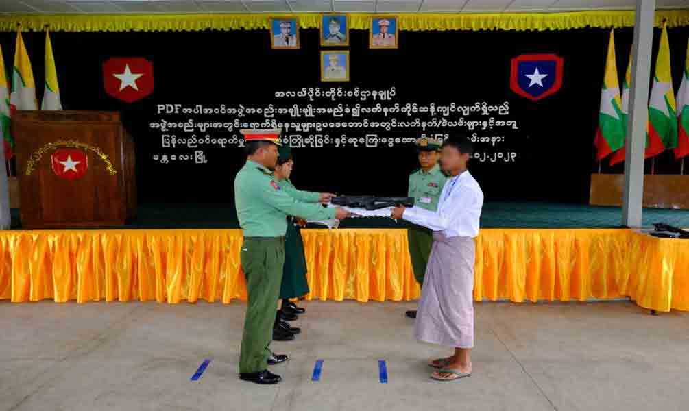 နိုင်ငံတော်စီမံအုပ်ချုပ်ရေးကောင်စီသည် PDF အပါအဝင် အဖွဲ့အစည်းအမျိုးမျိုး အမည်ခံ၍ လက်နက်ကိုင်ဆန့်ကျင်လျက်ရှိသည့် အဖွဲ့အစည်းများအတွင်း ရောက်ရှိနေသူများအား ဥပဒေဘောင်အတွင်းသို့ ပြန်လည်ဝင်ရောက်ရန်ဖိတ်ခေါ်၍ ဥပဒေဘောင်အတွင်းသို့ ဝင်ရောက်လာသူများကို လိုအပ်သည့်ကူညီပံ့ပိုးမှုများ ဆောင်ရွက်ပေးသွားမည်ဖြစ်ကြောင်းနှင့် လက်နက်/ခဲယမ်းများပါရှိမှုအတွက် ဆုကြေးငွေများ ပေးအပ်သွားမည်ဖြစ်ကြောင်း ထုတ်ပြန်ထားရှိပြီးဖြစ်ရာ ယနေ့တွင် ပြစ်မှုကျူးလွန်ခြင်းမရှိသော PDF အဖွဲ့မှ ဥပဒေဘောင်အတွင်းသို့ ပြန်လည်ဝင်ရောက်လာသူများအား မိဘအုပ်ထိန်းသူများထံ ပြန်လည်လွှဲပြောင်းပေးအပ်ခြင်းကို အလယ်ပိုင်းတိုင်းစစ်ဌာနချုပ်၊ နယ်မြေခံသင်တန်းကျောင်းရှိ အနော်ရထာခန်းမ၌ ပြုလုပ်ရာ တိုင်းစစ်ဌာနချုပ်မှ တာဝန်ရှိသူများ၊ ဌာနဆိုင်ရာတာဝန်ရှိသူများ၊ ဥပဒေဘောင်အတွင်းဝင်ရောက်လာသူများနှင့် ၎င်းတို့၏ မိဘအုပ်ထိန်းသူများ တက်ရောက်ကြသည်။