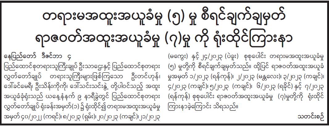 တရားမအထူးအယူခံမှု (၅) မှု စီရင်ချက်ချမှတ် ရာဇဝတ်အထူးအယူခံမှု (၇)မှု ကို ရုံးထိုင်ကြားနာ