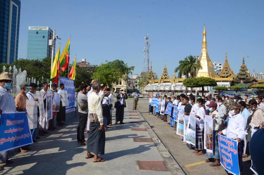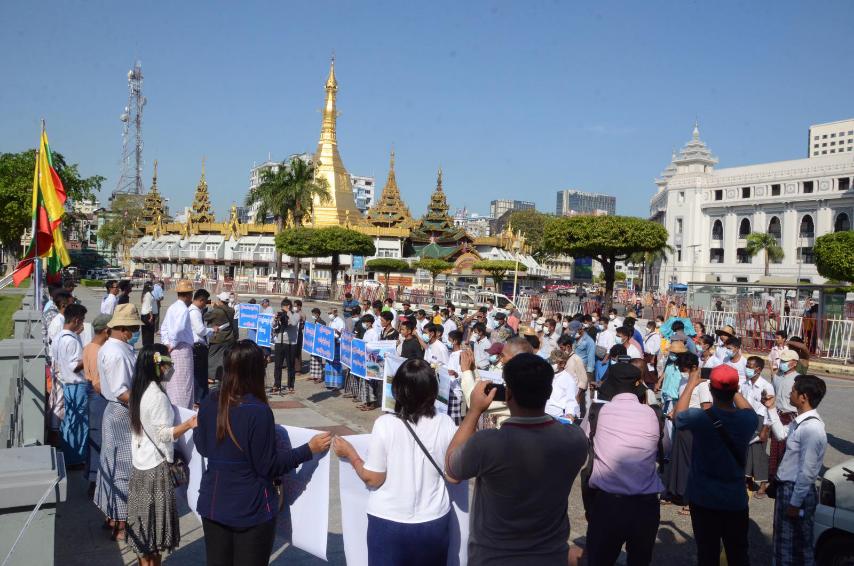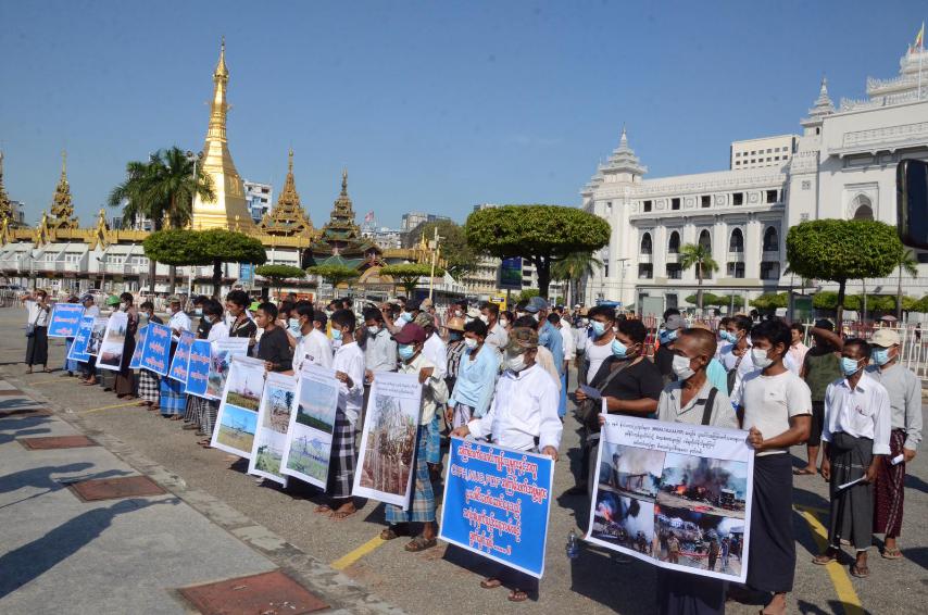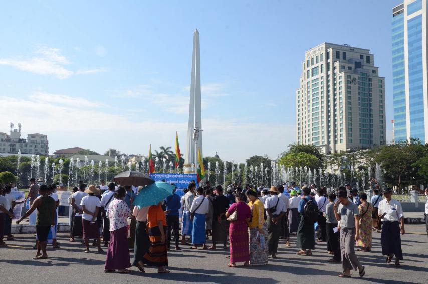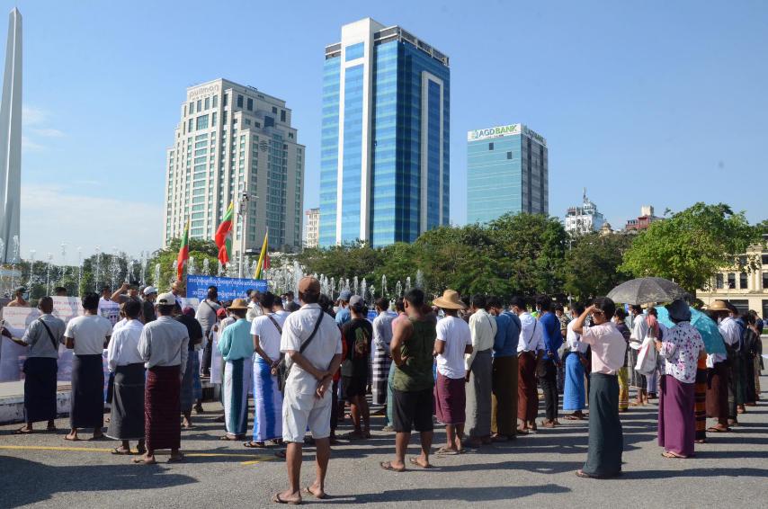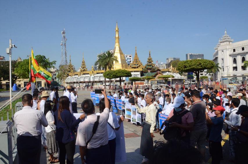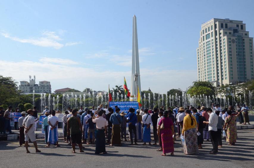 မြန်မာ့အမျိုးသားရေးကွန်ရက်အဖွဲ့မှဦးဆောင်ပြီး "အလုံးစုံပျက်သုဉ်းရေးကို လုပ်ဆောင်နေသော အကြမ်းဖက်အဖွဲ့များ၏ အကြမ်းဖက်လုပ်ရပ်များအား ဆန့်ကျင်ရှုတ်ချပွဲ" ကို ယနေ့နံနက် ၉ နာရီခွဲက ရန်ကုန်မြို့၊ မြို့တော်ခန်းမအရှေ့၊ မဟာဗန္ဓုလပန်းခြံဘေး၊ ယာဉ်ရပ်နားကွင်း၌ ကျင်းပခဲ့သည်။