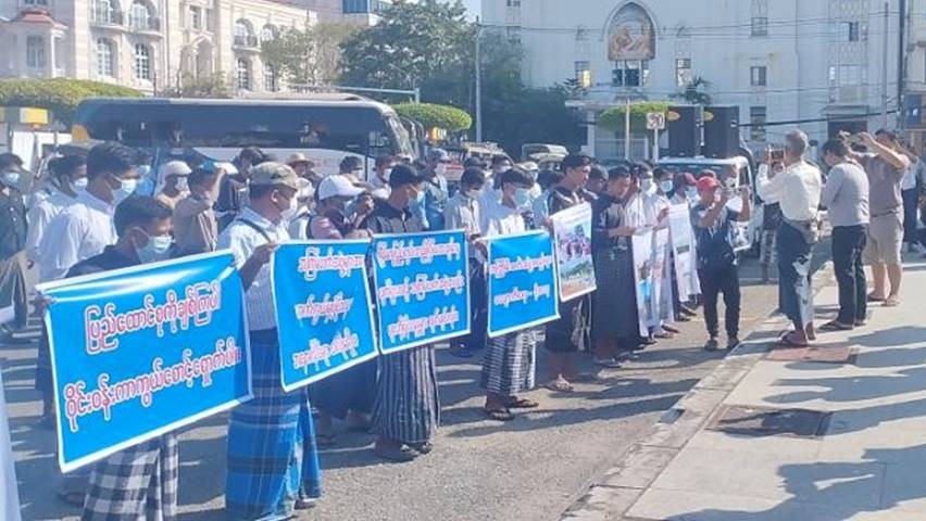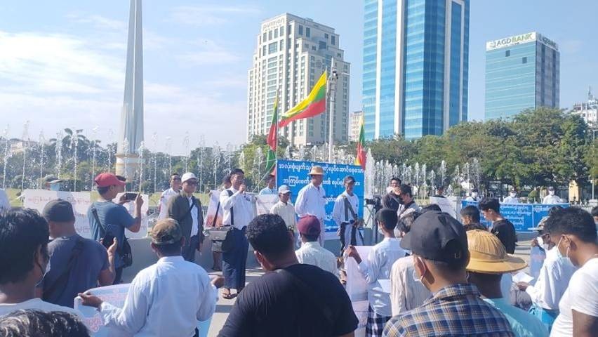 မြန်မာ့အမျိုးသားရေးကွန်ရက်အဖွဲ့မှ ဦးဆောင်ပြီး “အလုံးစုံပျက်သုဉ်းရေးကို လုပ်ဆောင်နေသော အကြမ်းဖက်အဖွဲ့များ၏ အကြမ်းဖက်လုပ်ရပ်များအား ဆန့်ကျင်ရှုတ်ချပွဲ"ကို ယနေ့နံနက်ပိုင်းတွင် ရန်ကုန်မြို့၊ မြို့တော်ခန်းမရှေ့၊ မဟာဗန္ဓုလပန်းခြံဘေး၊ ယာဉ်ရပ်နားကွင်း၌ ပြုလုပ်ခဲ့ကြသည်။