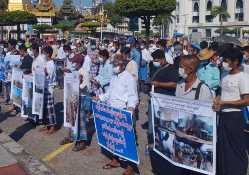 အဆိုပါ အကြမ်းဖက်လုပ်ရပ်များအား ဆန့်ကျင်ရှုတ်ချပွဲကို မြန်မာ့အမျိုးသားရေးကွန်ရက်အဖွဲ့မှ ဦးဆောင်ပြီး၊ အမျိုးသားရေးတက်ကြွလှုပ်ရှားသူများ၊ နိုင်ငံရေးပါတီဝင်များ၊ အကြမ်းဖက်လုပ်ရပ်များကို ဆန့်ကျင်သည့် ပြည်သူများ ပူးပေါင်းပါဝင်ပြုလုပ်ခဲ့ခြင်းဖြစ်ကြောင်း သတင်းရရှိသည်။