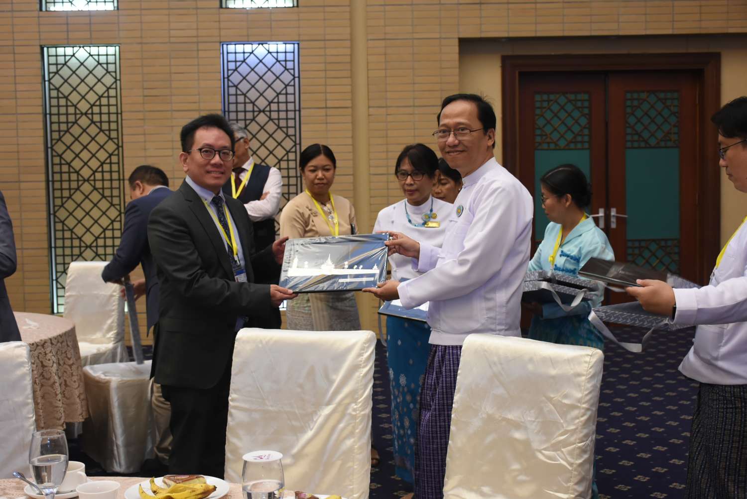 ထို့နောက် ပြည်ထောင်စုဝန်ကြီးသည် နိုင်ငံတကာမှ ပြည်သူ့ကျန်းမာရေးပညာရှင်များနှင့် နေ့လည်စာအတူတကွသုံးဆောင်ပြီး ပညာရှင်များအား နှီးနှောဖလှယ်ပွဲအမှတ်တရ လက်ဆောင်များ ပေးအပ်သည်။