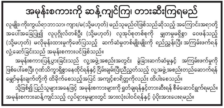 အမုန်းစကားကို ဆန့်ကျင်ကြ၊ တားဆီးကြရမည်