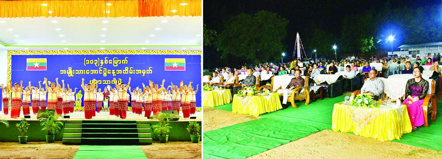 ယင်းနောက် ဂုဏ်ပြုဆုငွေများ ပေးအပ်ချီးမြှင့်ကြရာ ပြည်ထောင်စုဝန်ကြီးက ဖျော်ဖြေရေးအဖွဲ့များကို ဂုဏ်ပြုဆုငွေ ကျပ်သိန်း ၂၀ ပေးအပ်ချီးမြှင့်ခဲ့သည်။