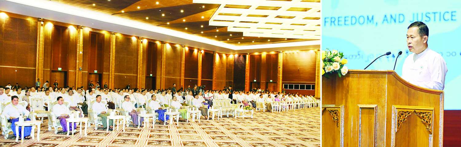 မိမိတို့မြန်မာနိုင်ငံအနေဖြင့်လည်း ၂၀၀၈ ခုနှစ် ပြည်ထောင်စုသမ္မတမြန်မာနိုင်ငံတော် ဖွဲ့စည်းပုံအခြေခံဥပဒေပါ နိုင်ငံသားများ၏ မူလအခွင့်အရေးများကို ကာကွယ်စောင့်ရှောက်ပေးနိုင်ရန်နှင့် ကမ္ဘာ့လူ့အခွင့်အရေးကြေညာစာတမ်းပါ လူ့အခွင့်အရေးများကို နိုင်ငံသားများ ခံစားရရှိနိုင်ရန်ရည်ရွယ်ပြီး မြန်မာနိုင်ငံ အမျိုးသားလူ့အခွင့်အရေးကော်မရှင်ကို ဖွဲ့စည်းတည်ထောင်ပေးခဲ့သည်မှာ ယခုနှစ်ဆိုလျှင် ၁၂ နှစ်ပြည့်မြောက်ခဲ့ပြီဖြစ်ကြောင်း၊ လူ့အခွင့်အရေးစံနှုန်းများကို လေးစားလိုက်နာခြင်း၊ ပြဋ္ဌာန်းဖြည့်ဆည်းပေးခြင်းအားဖြင့် ငြိမ်းချမ်းသာယာသည့် လူ့အဖွဲ့အစည်းများ ဖြစ်ပေါ်လာစေရေးနှင့် ကဏ္ဍအသီးသီးတွင် မညီမျှမှုများ၊ ခွဲခြားဆက်ဆံမှုများမရှိစေရေးကို မြန်မာနိုင်ငံ လူ့အခွင့်အရေးကော်မရှင်အပါအဝင် အခြားသက်ဆိုင်ရာအဖွဲ့အစည်းအသီးသီးတို့နှင့်အတူ ချိတ်ဆက်ပူးပေါင်းလုပ်ဆောင်လျက်ရှိကြောင်း။